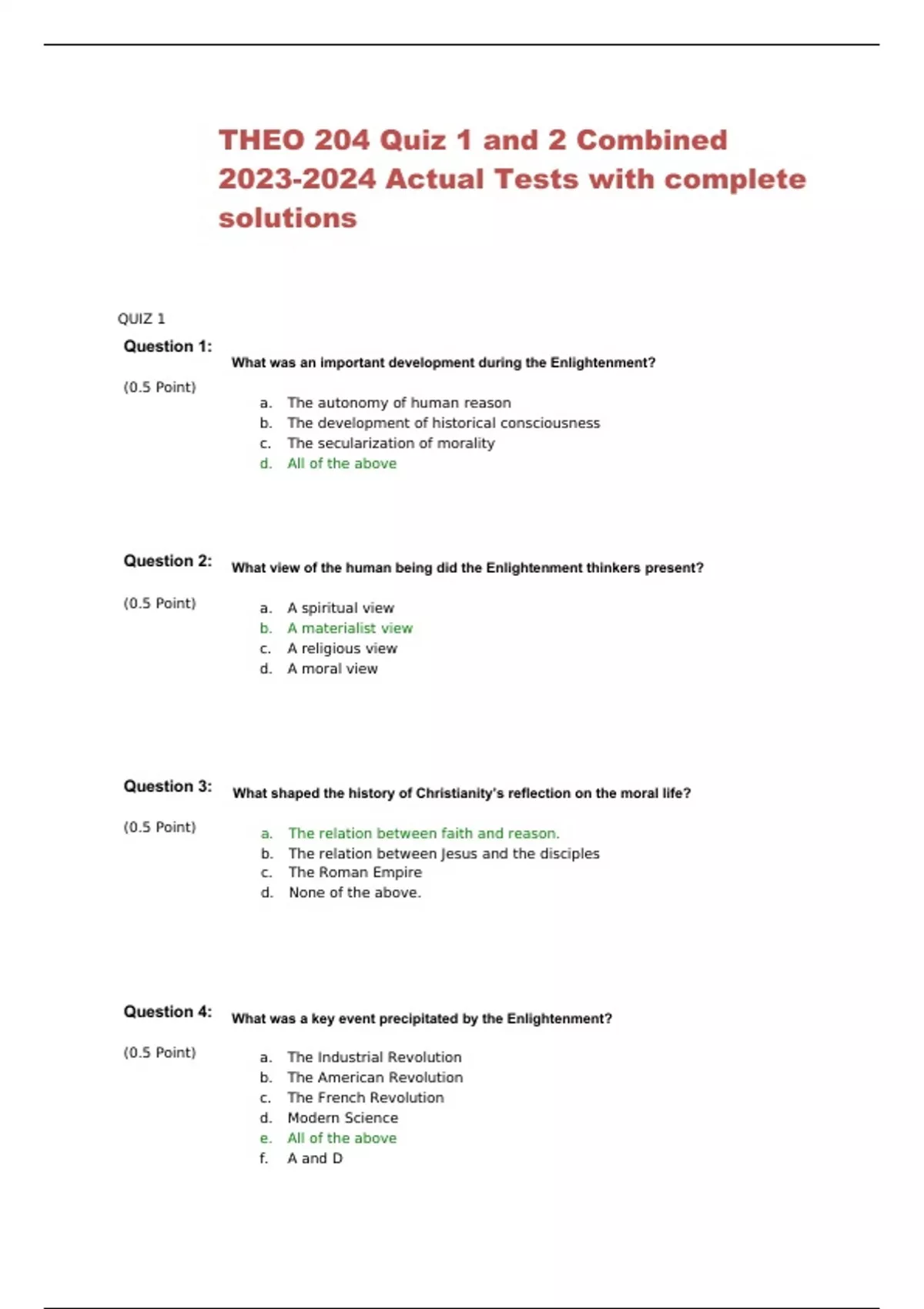 THEO 204 Quiz 1 and 2 Combined Actual Tests with complete solutions