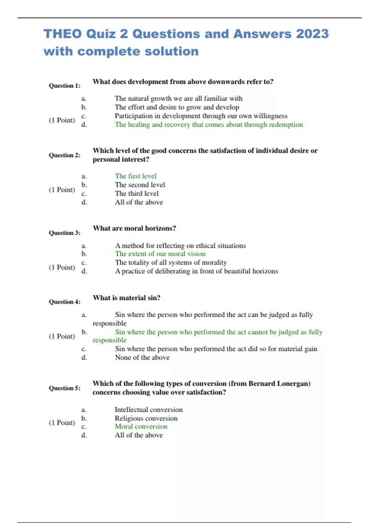 THEO Quiz 2 Questions and Answers 2024 with complete solution