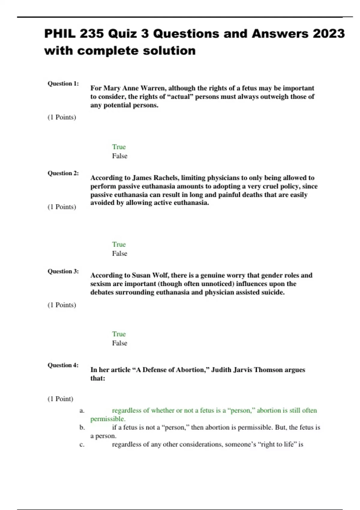 PHIL 235 Quiz 3 Questions and Answers 2024 with complete solution