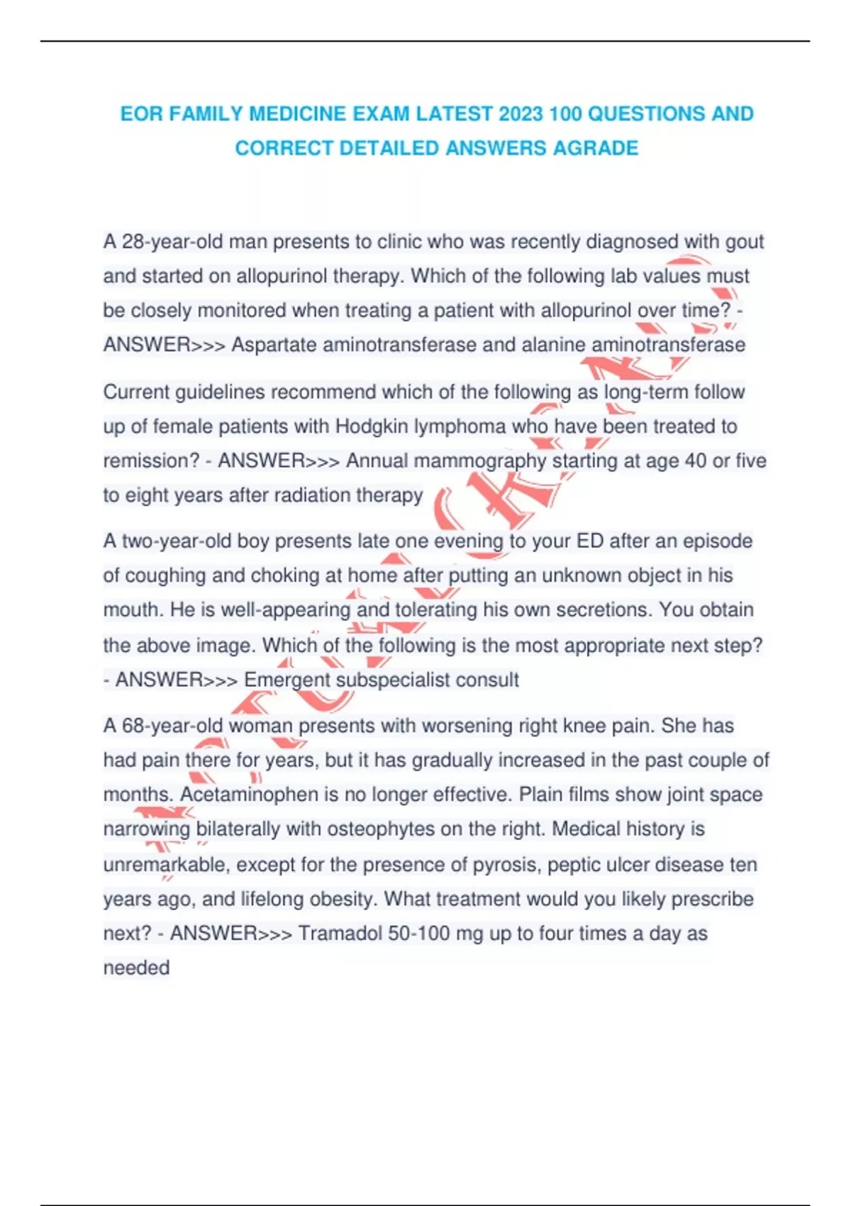 EOR FAMILY MEDICINE EXAM LATEST 2023 100 QUESTIONS AND CORRECT DETAILED ANSWERS