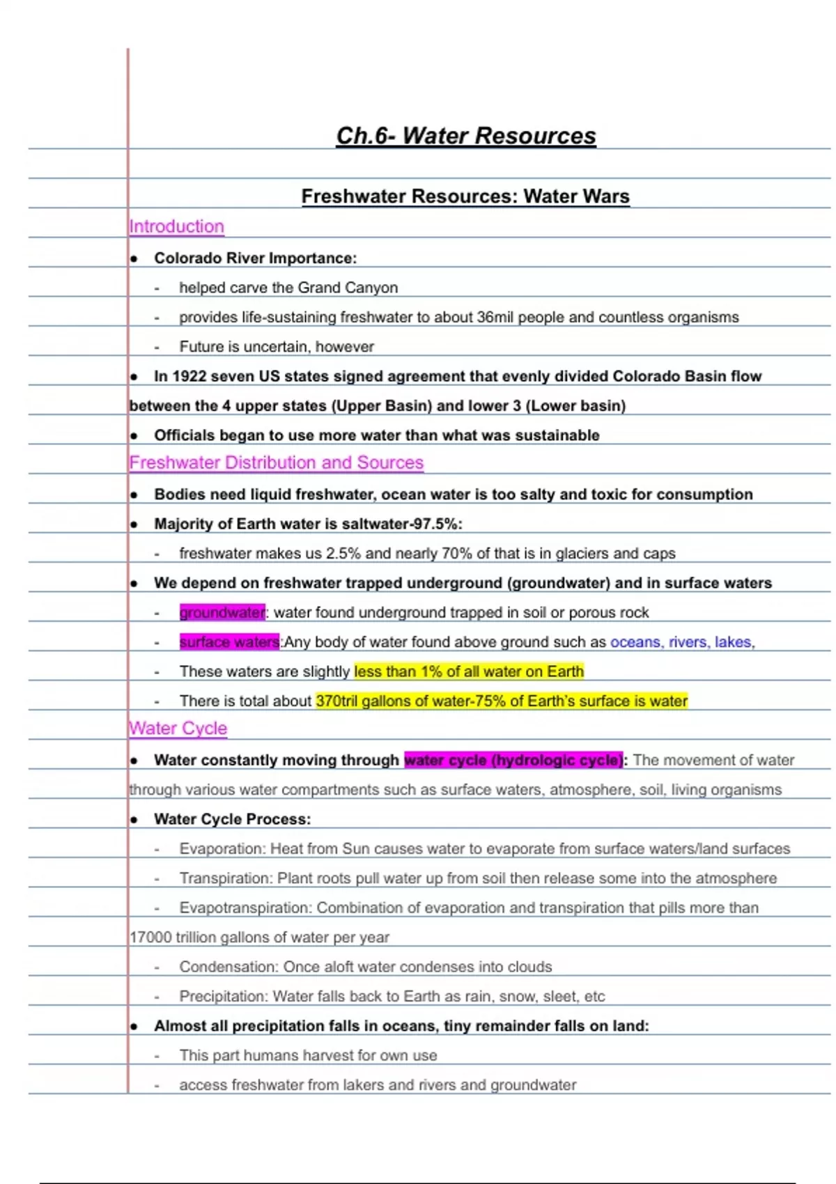 An in-depth look into Chapter 6 of For a Changing World by Susan Karr. These notes examine freshwater resources and water wars, water pollution, and marine ecosystems