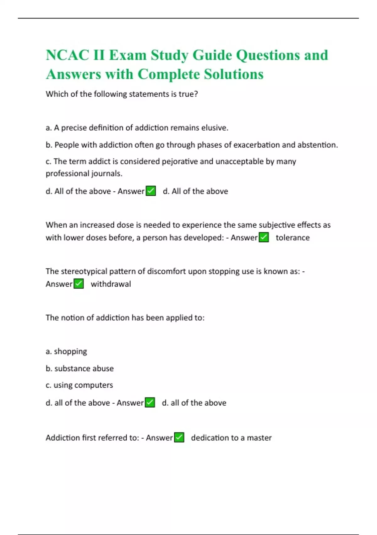 NCAC II Exam Study Guide Questions and Answers with Complete Solutions