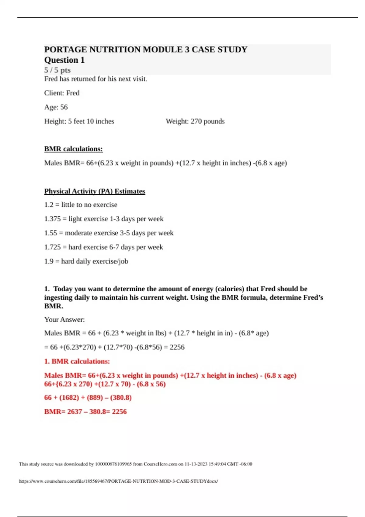PORTAGE NUTRTION MOD 3 CASE STUDY 2023 Latest update