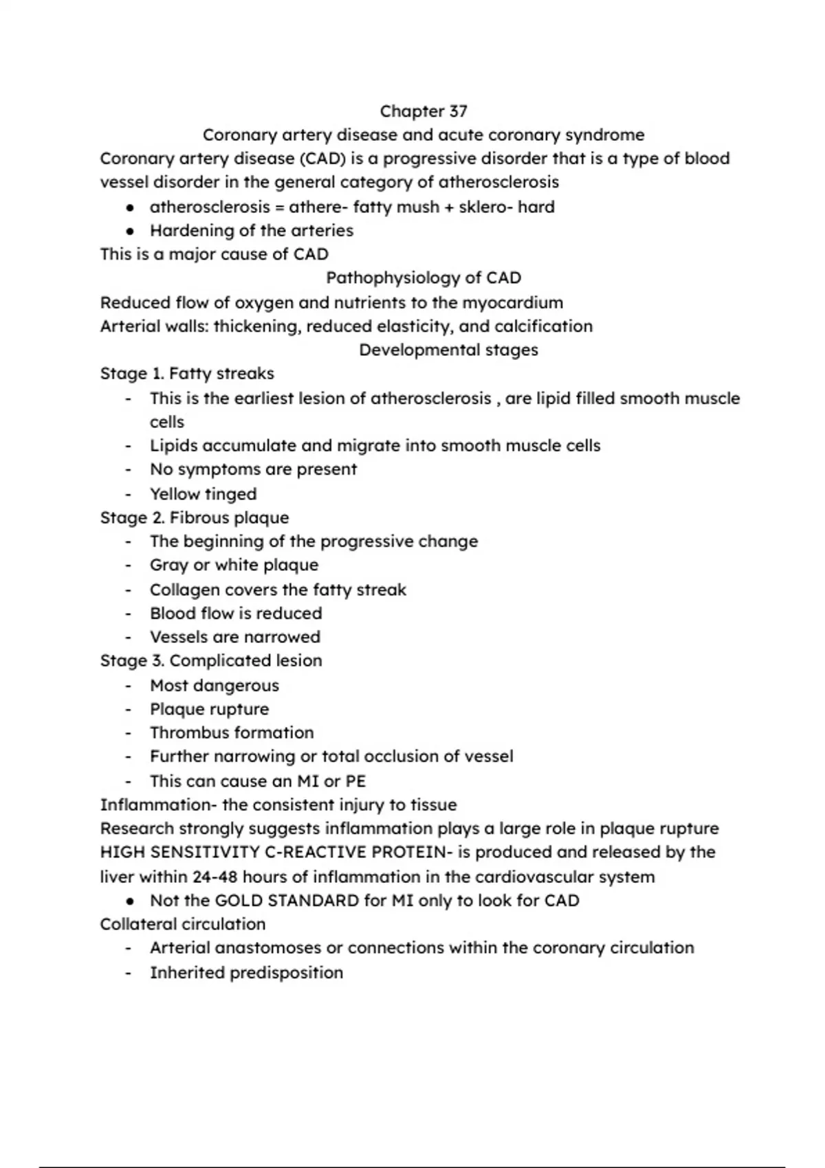 CAD the patho, stages and medications. angina and reasons for angina. STEMI and NSTEMI