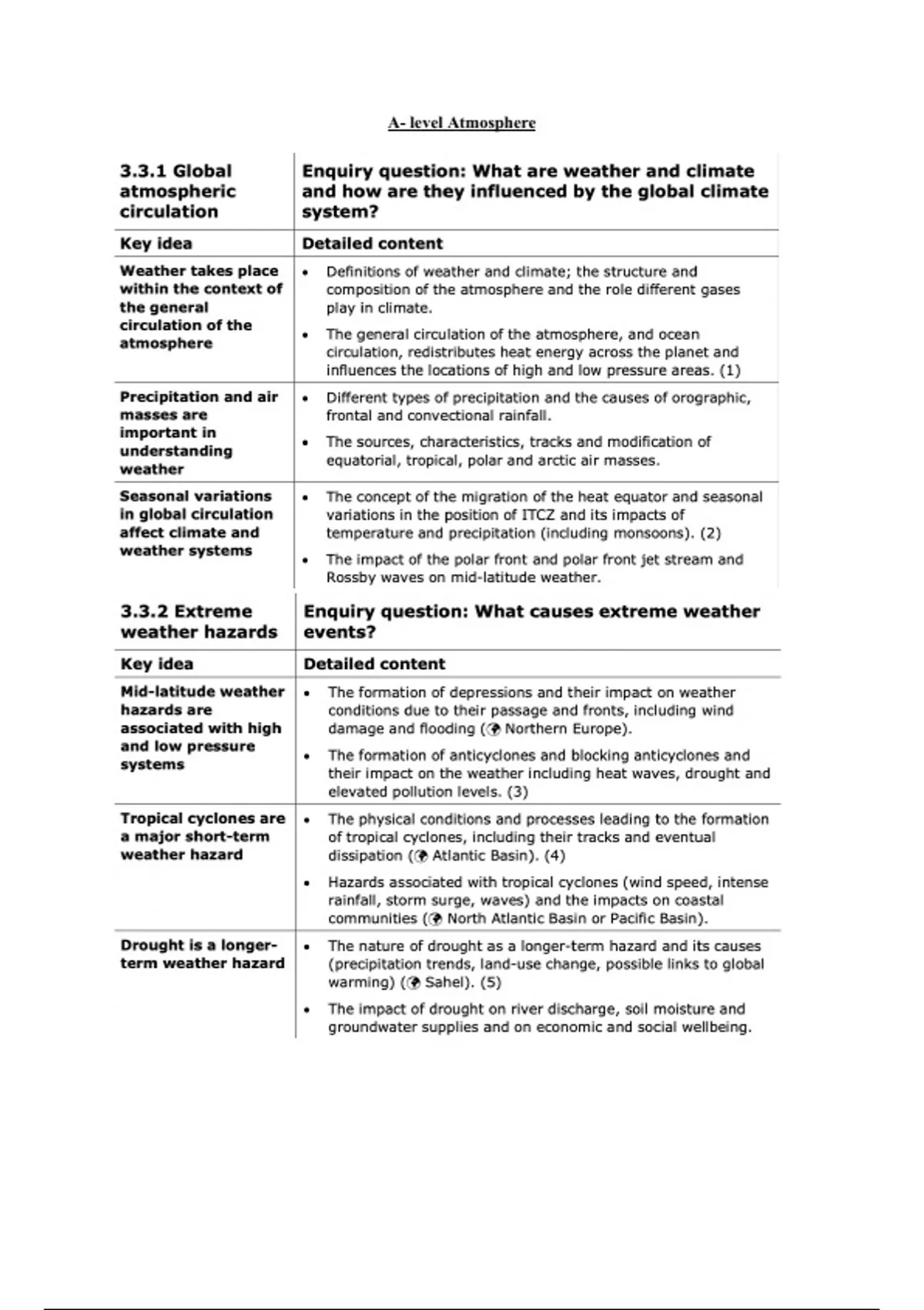 Summary Atmosphere- International A-Level Geography notes including AS-Level