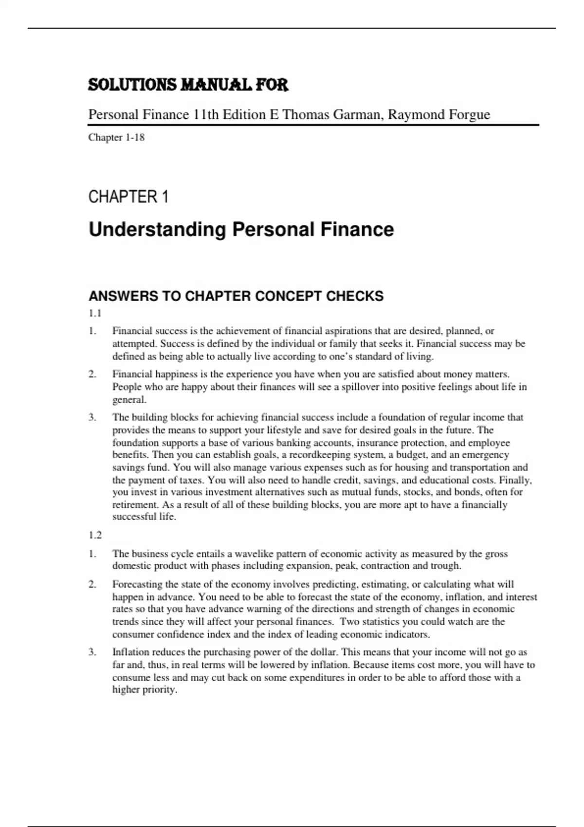 Solution Manual for Personal Finance 11th Edition By E Thomas Garman, Raymond Forgue