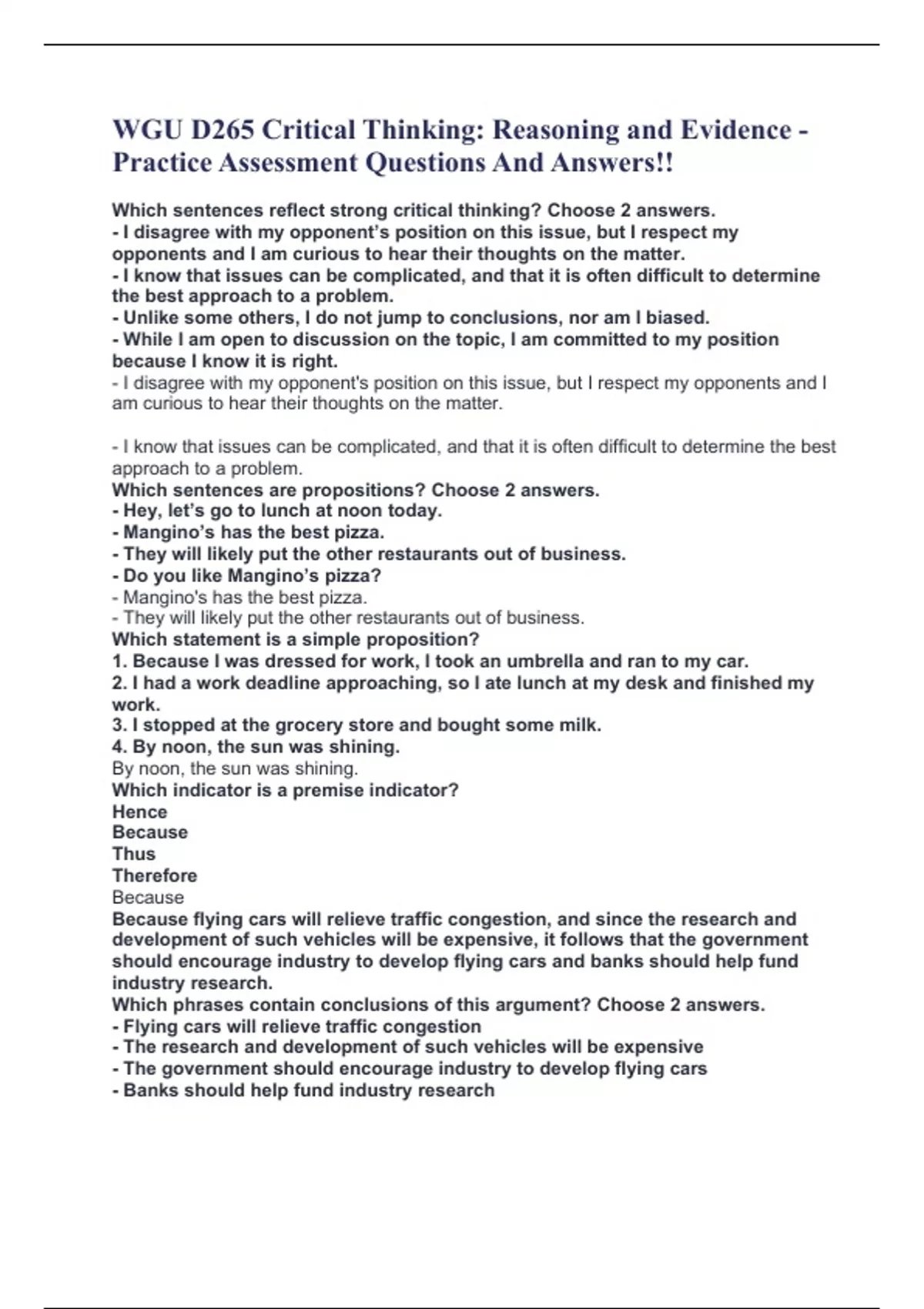 Which sentences reflect strong critical thinking? Choose 2 answers.