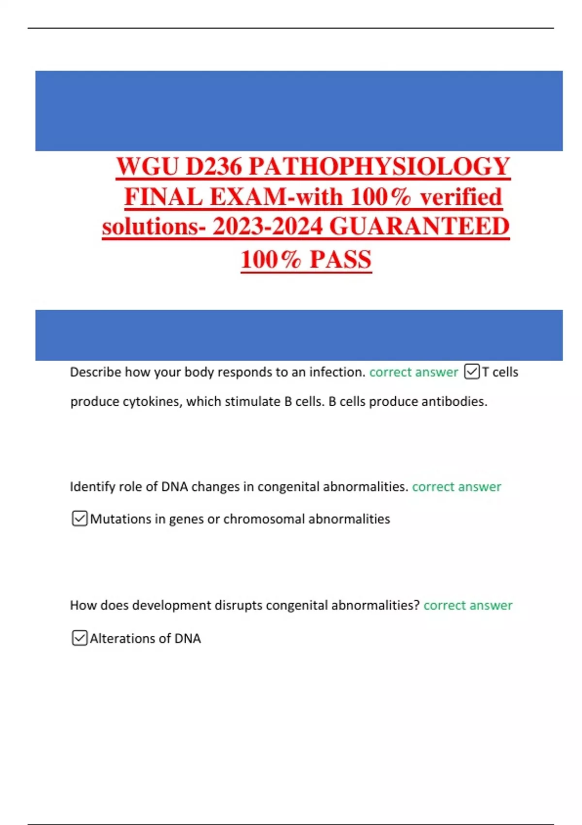 WGU D236 PATHOPHYSIOLOGY FINAL EXAM with 100% verified solutions GUARANTEED 100% PASS