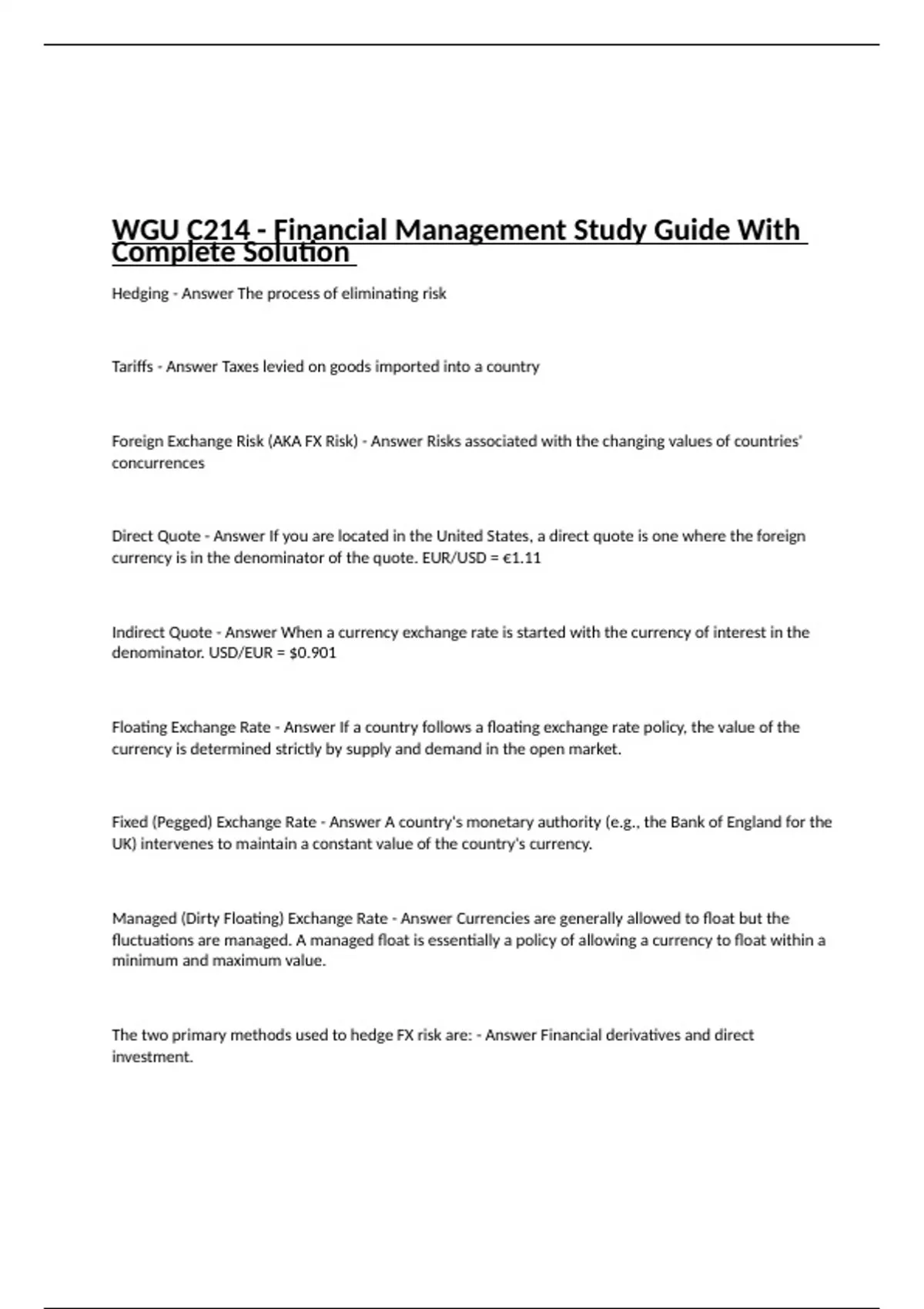 WGU C214 - Financial Management Study Guide With Complete Solution