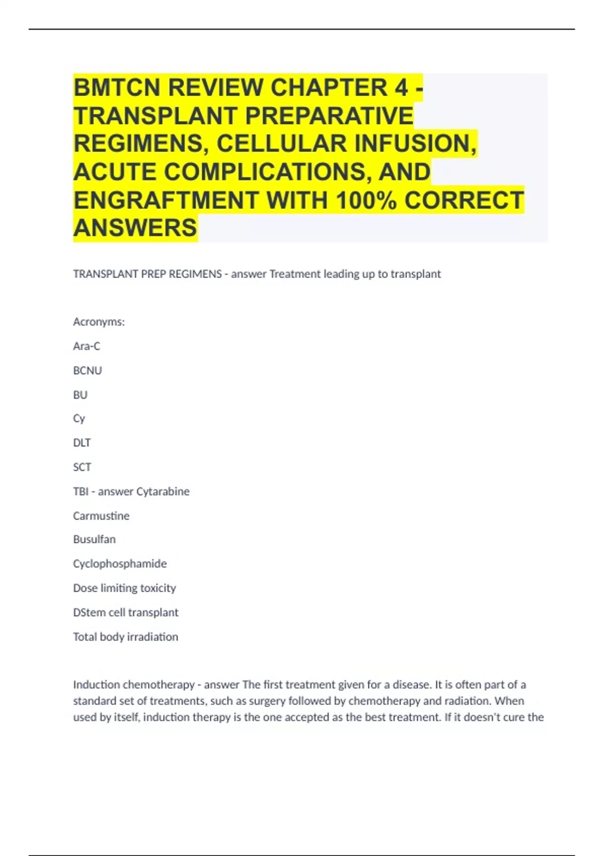 TRANSPLANT PREP REGIMENS - answer Treatment leading up to transplant