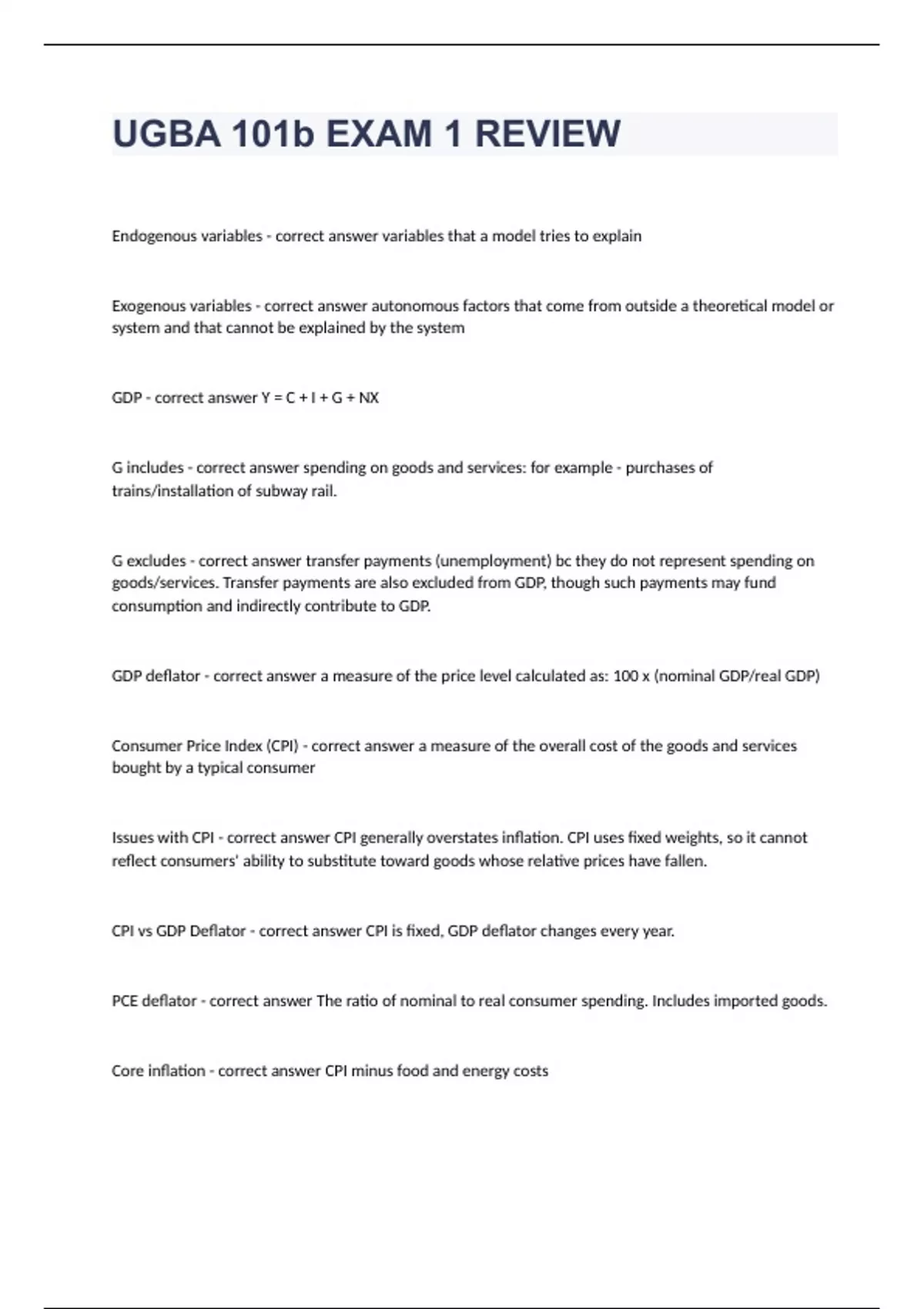 Consumer Price Index (CPI) - correct answer a measure of the overall cost of the goods and services