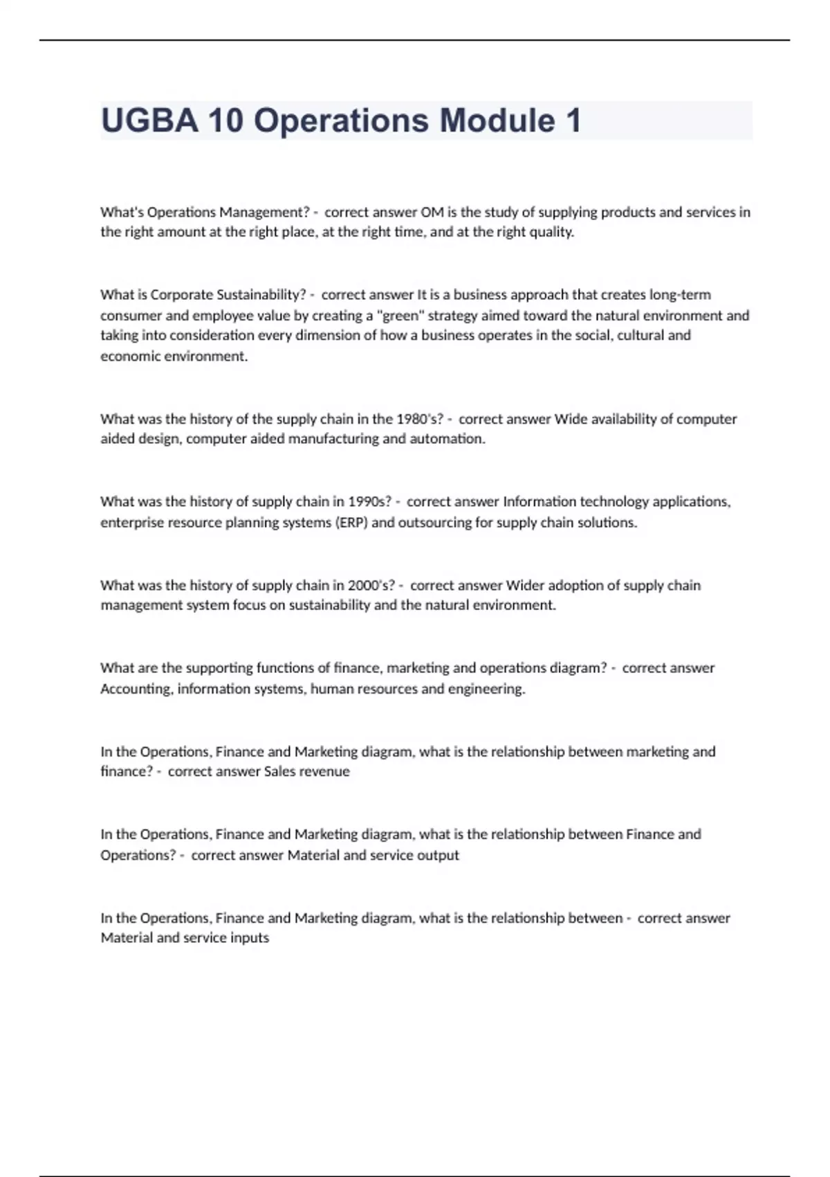 UGBA 10 Operations Module 1 questions with correct answers graded A+
