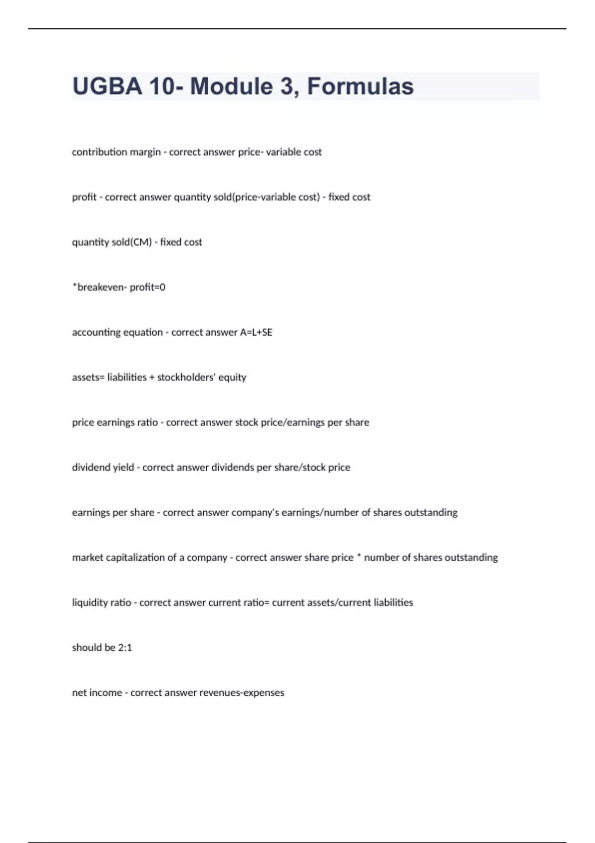 UGBA 10- Module 3, Formulas(questions and answers)graded A+ 2023/2024