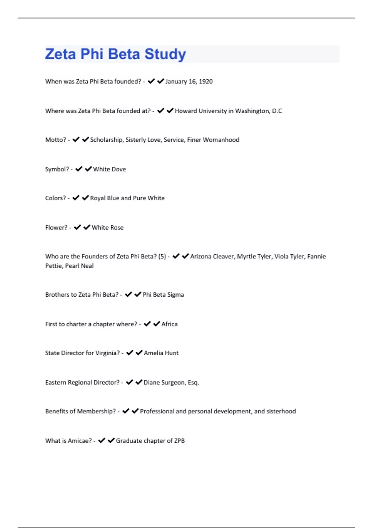 Zeta Phi Beta Questions and Answers with complete solution