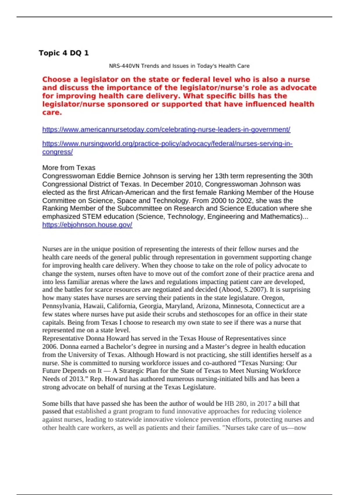 NRS 440VN Topics 1 - 8 Complete Discussion ( Package Deal )