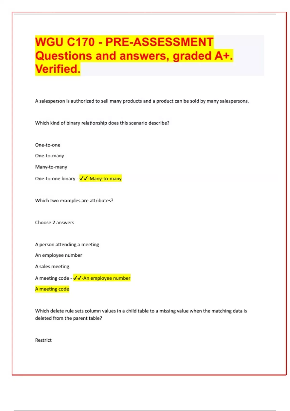 WGU C170 - PRE-ASSESSMENT Questions and answers, graded A+. Verified