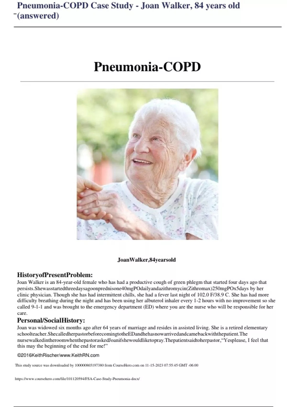 , Pneumonia-COPD Case Study - Joan Walker, 84 years old