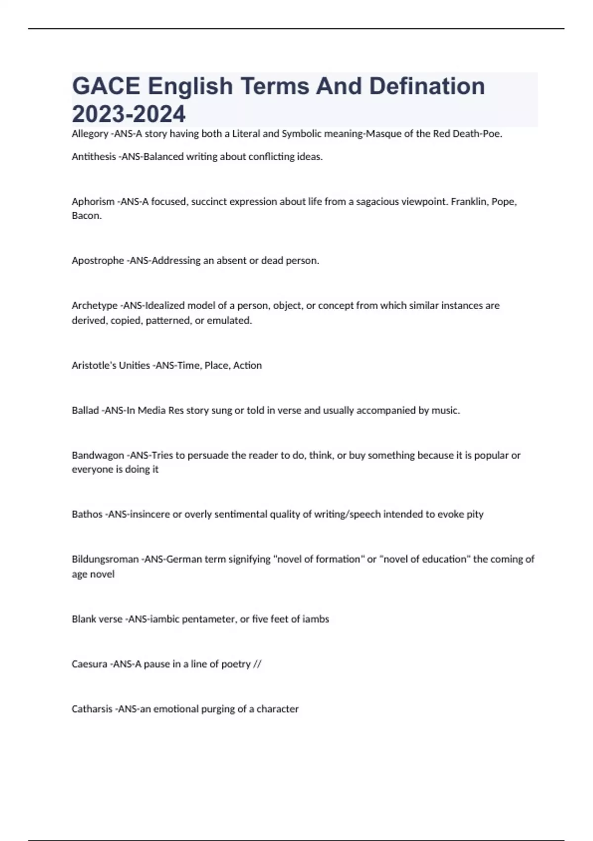 Allegory -ANS-A story having both a Literal and Symbolic meaning-Masque of the Red Death-Poe.