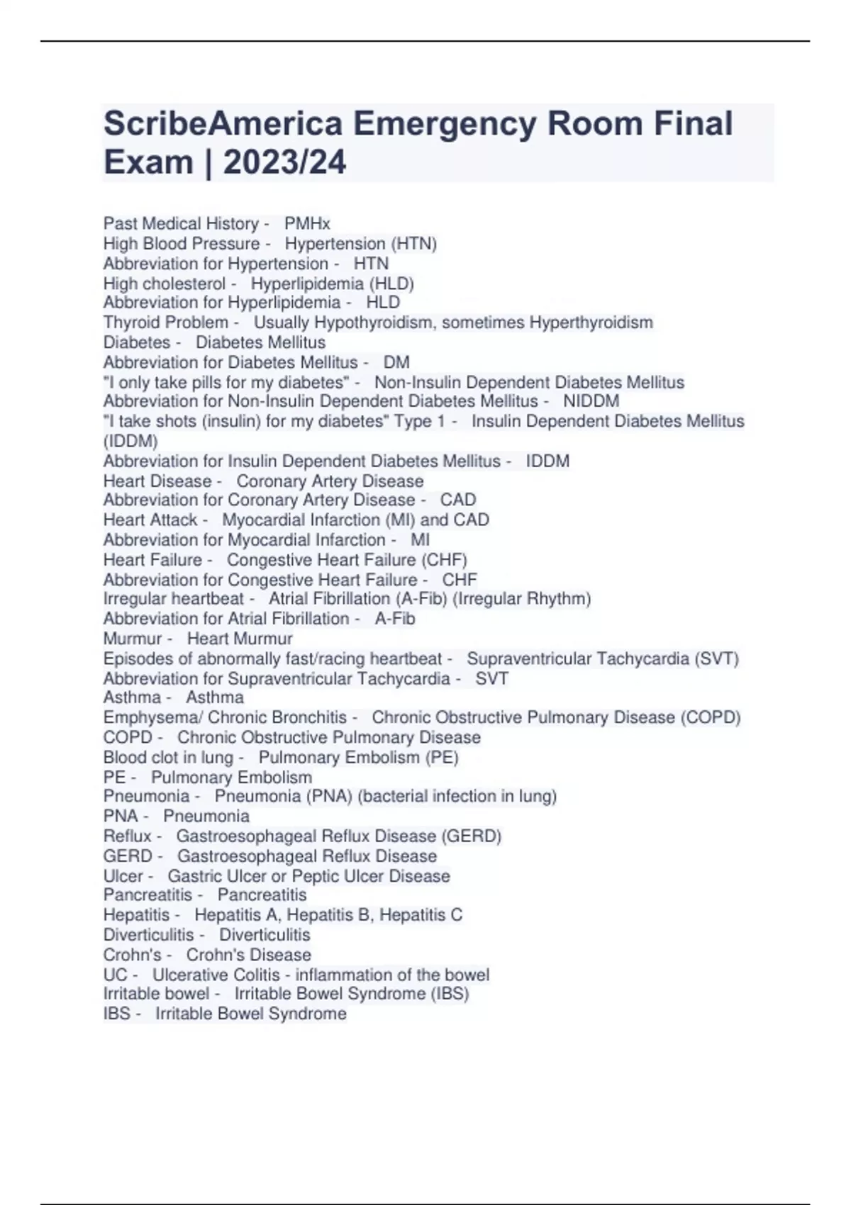 ScribeAmerica Emergency Room Final Exam | 2023/24