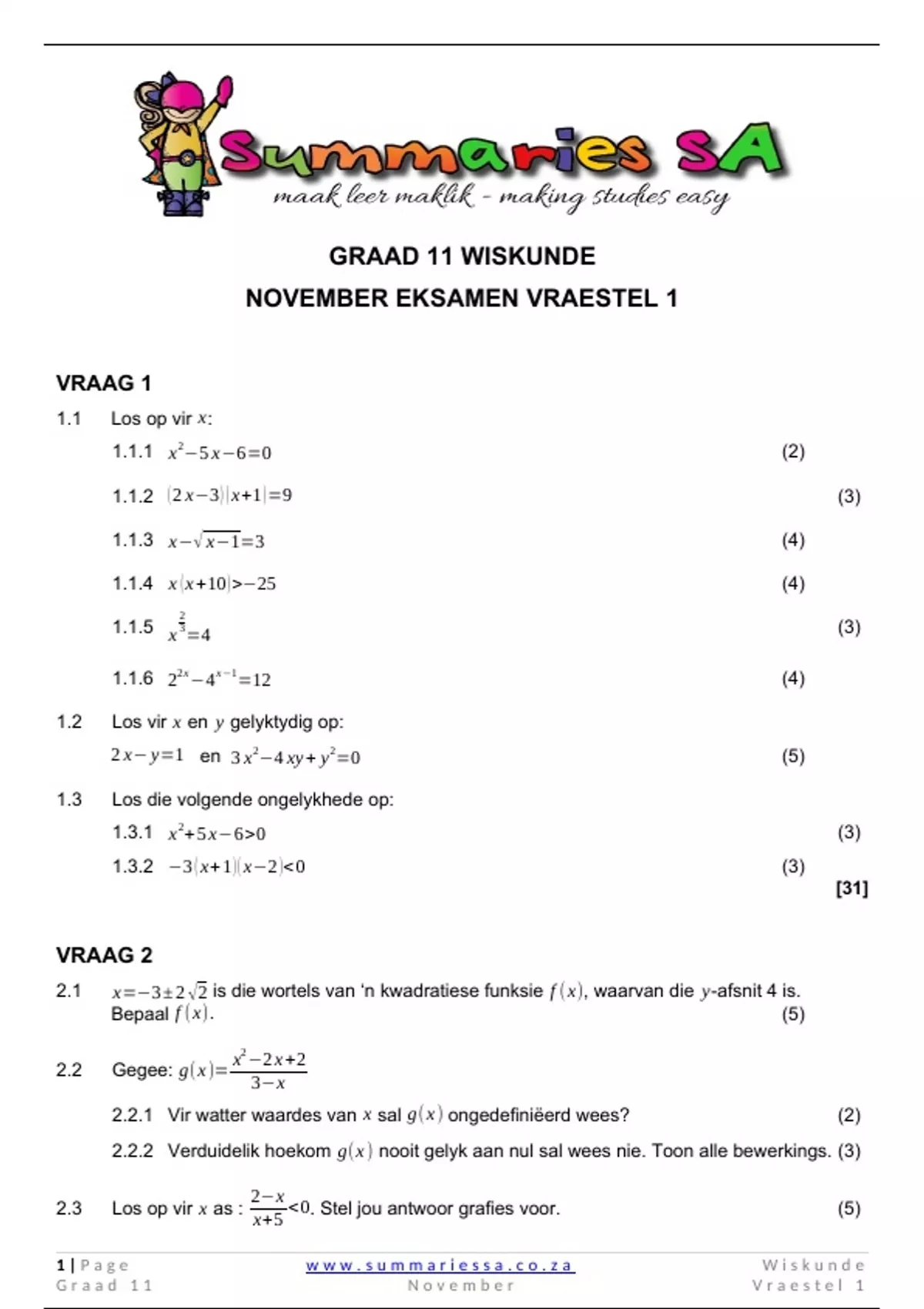 1|Page www.summariessa.co.za Wiskunde