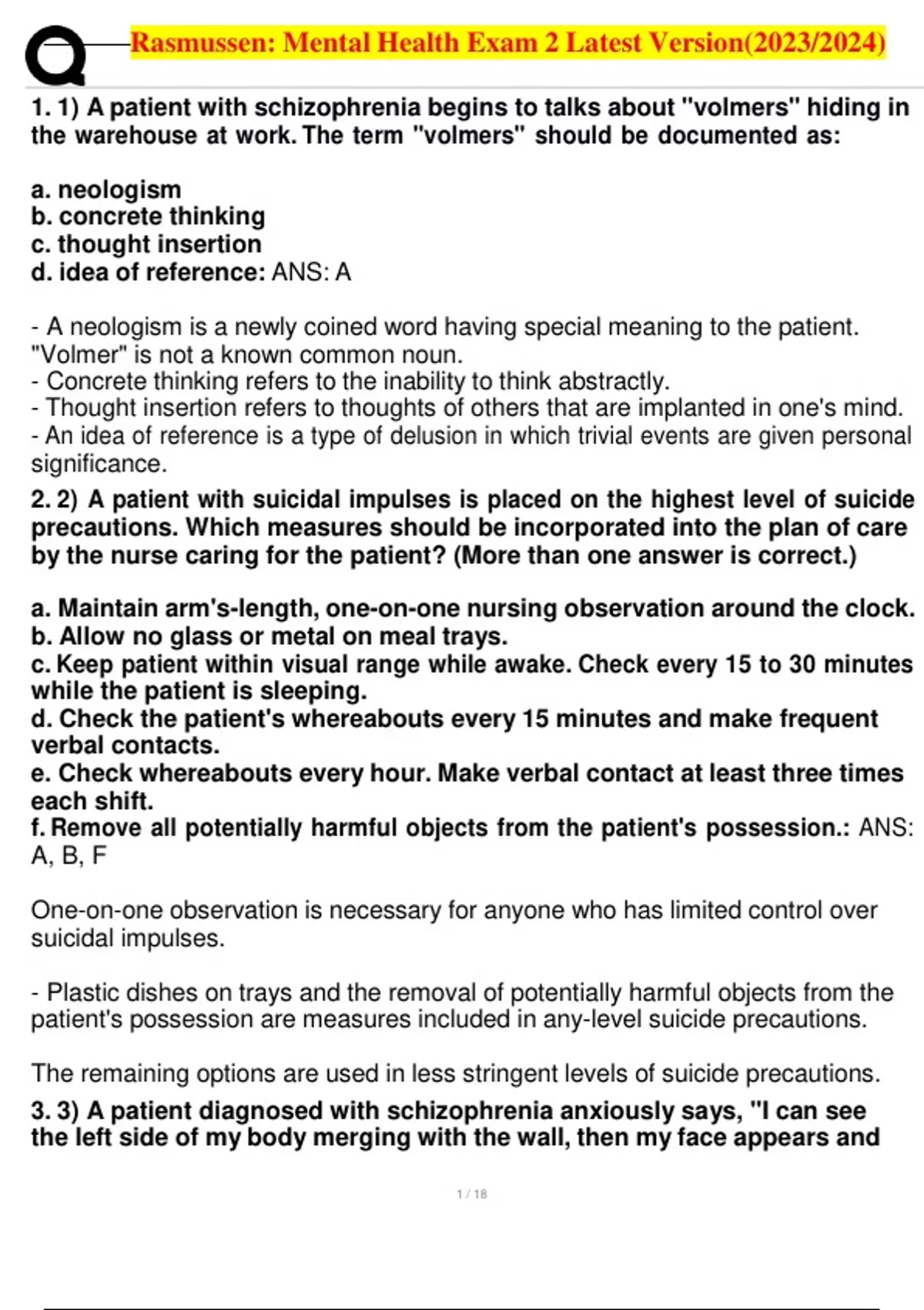 rasmussen mental health exam 2 latest version202