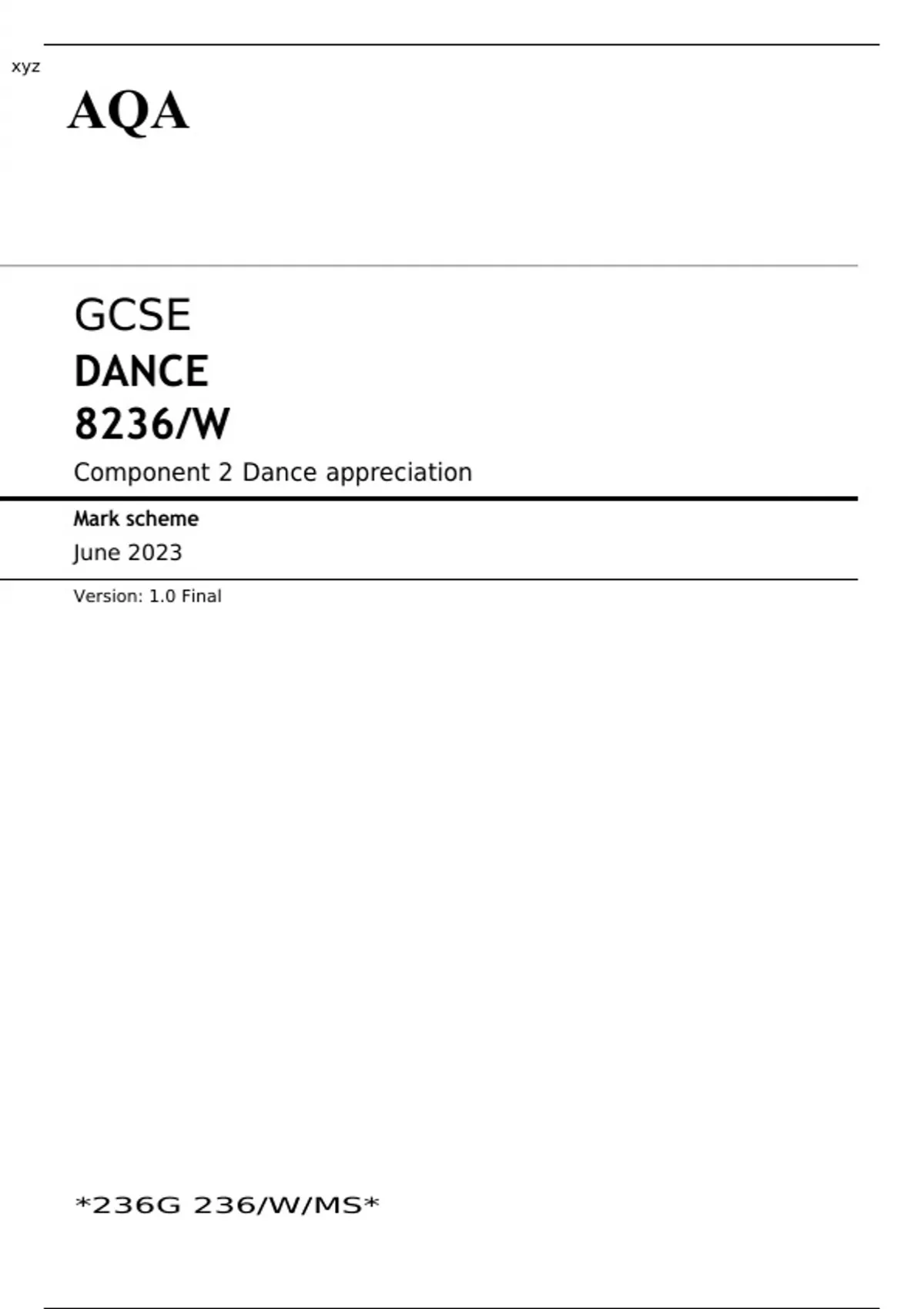 AQA GCSE DANCE 8236/W Component 2 JUNE 2023 MARK SCHEME: Dance appreciation