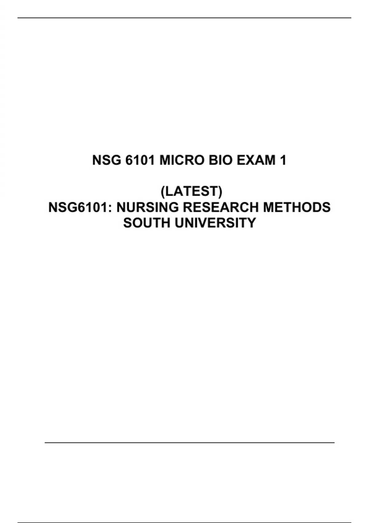NSG 6101 MICRO BIO EXAM 1 (LATEST) NURSING RESEARCH METHODS SOUTH UNIVERSITY