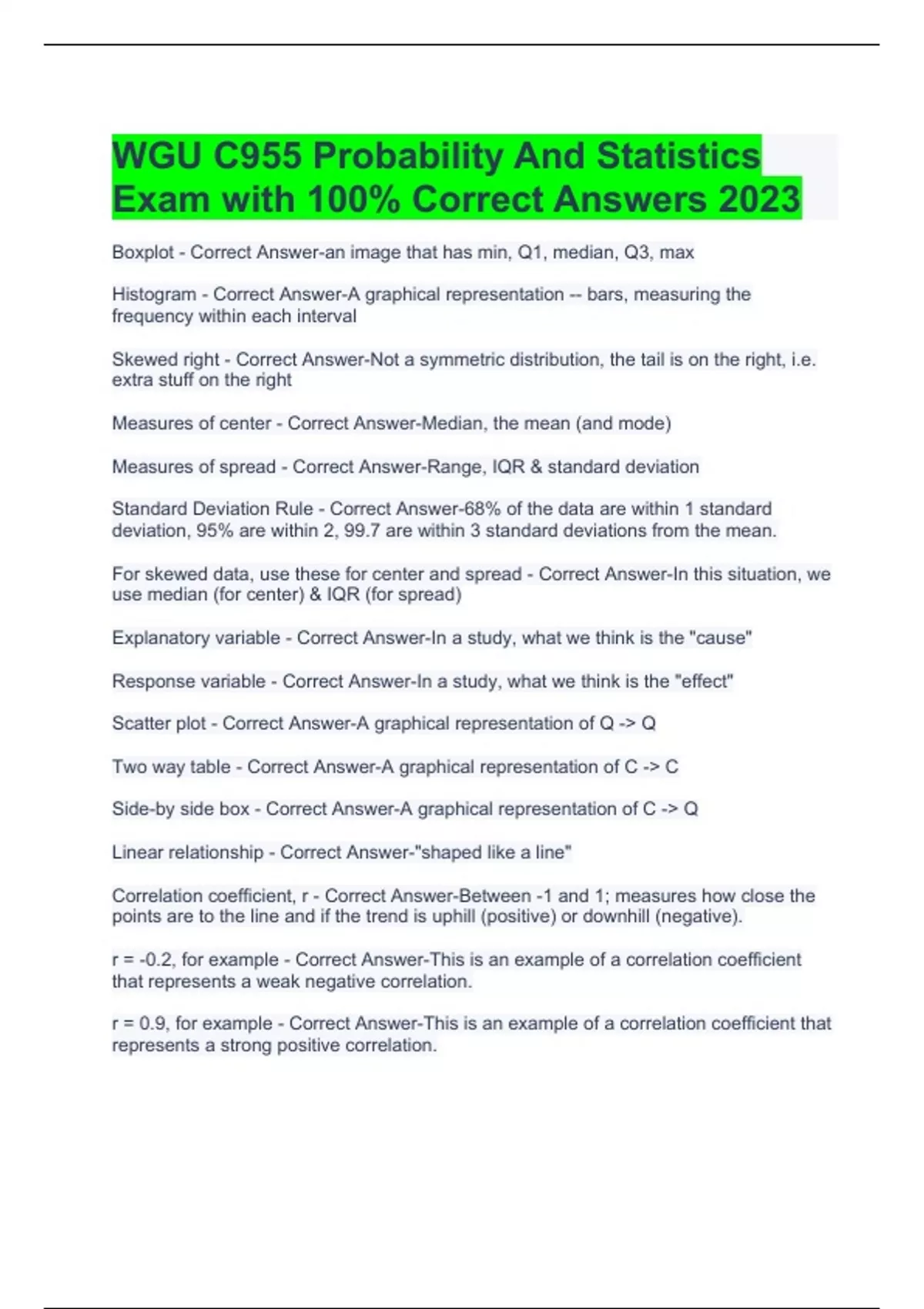 WGU C955 Probability And Statistics Exam with 100% Correct Answers 2023