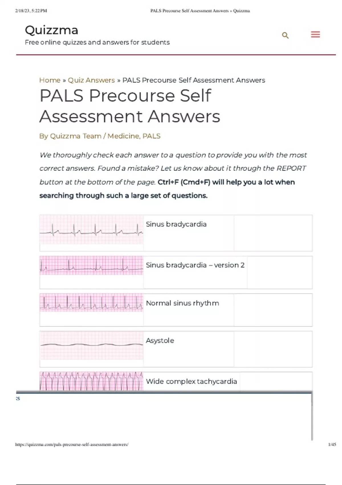 PALS Precourse Self Assessment Answers 2023/2024 We thoroughly check each answer to a question to provide you with the most correct answers. Found a mistake? Let us know about it through the REPORT button at the bottom of the page.