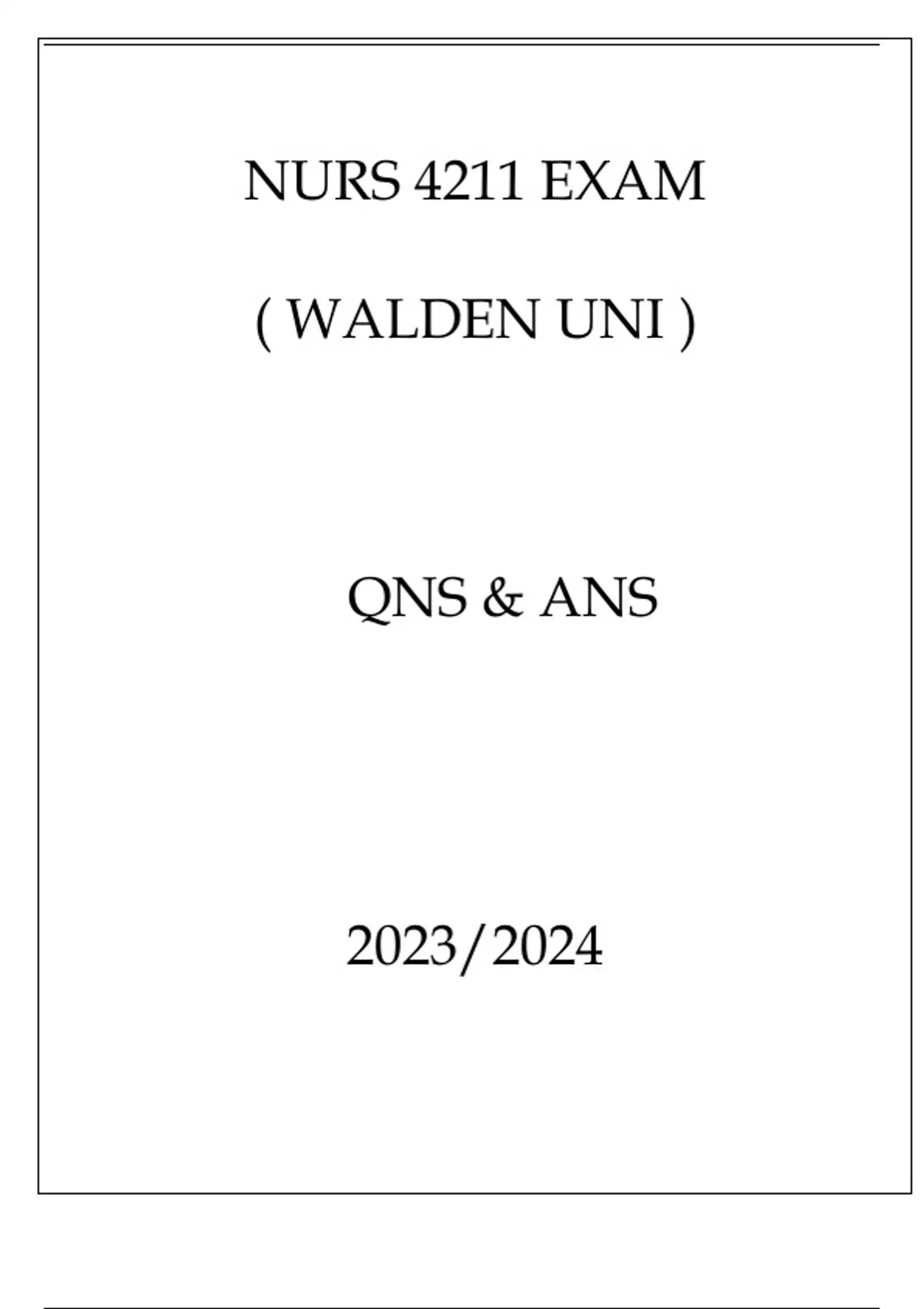 NURS 4211 EXAM ( WALDEN UNI ) QNS & ANS
