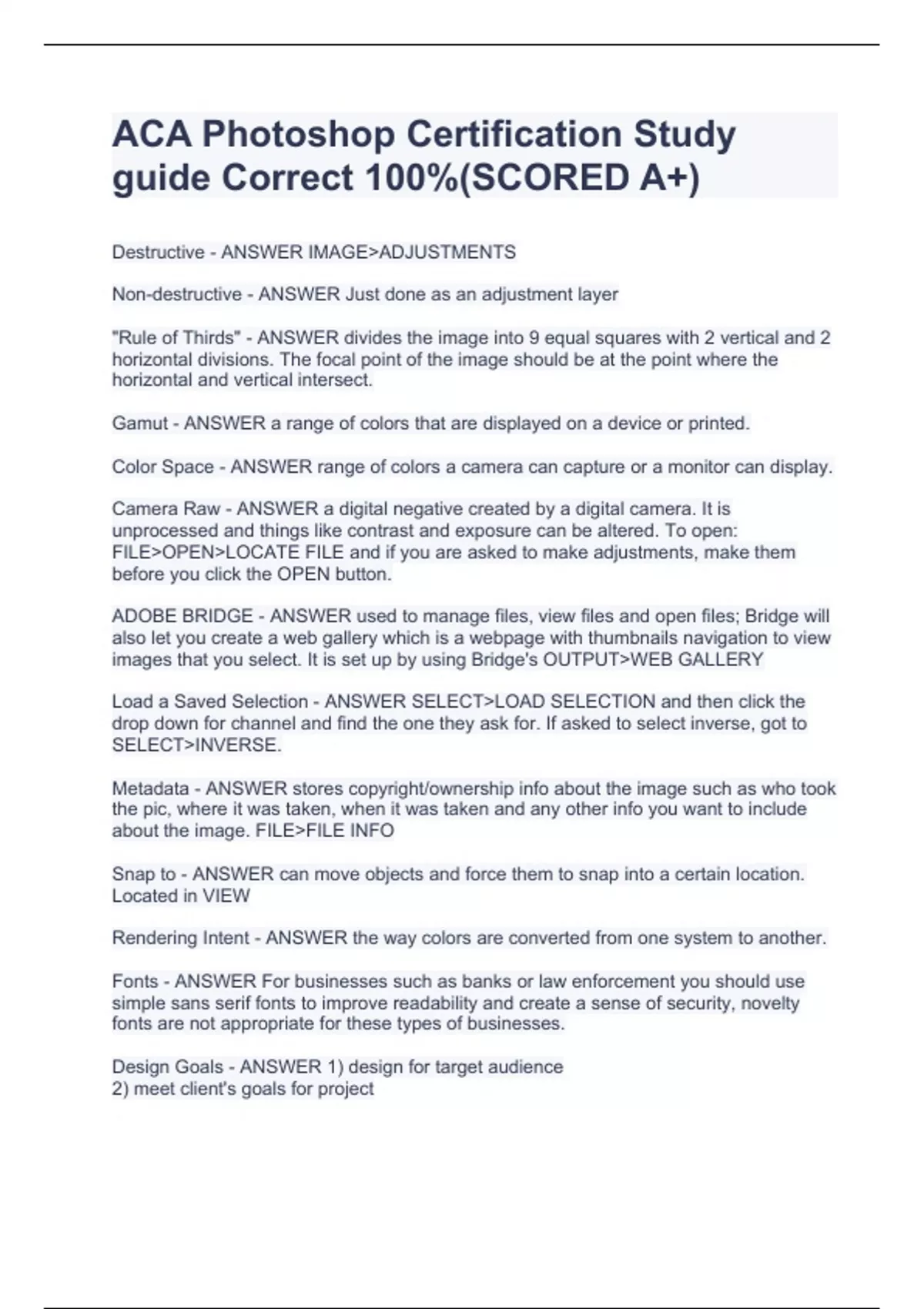 ACA Photoshop Certification Study guide Correct 100%(SCORED A+)