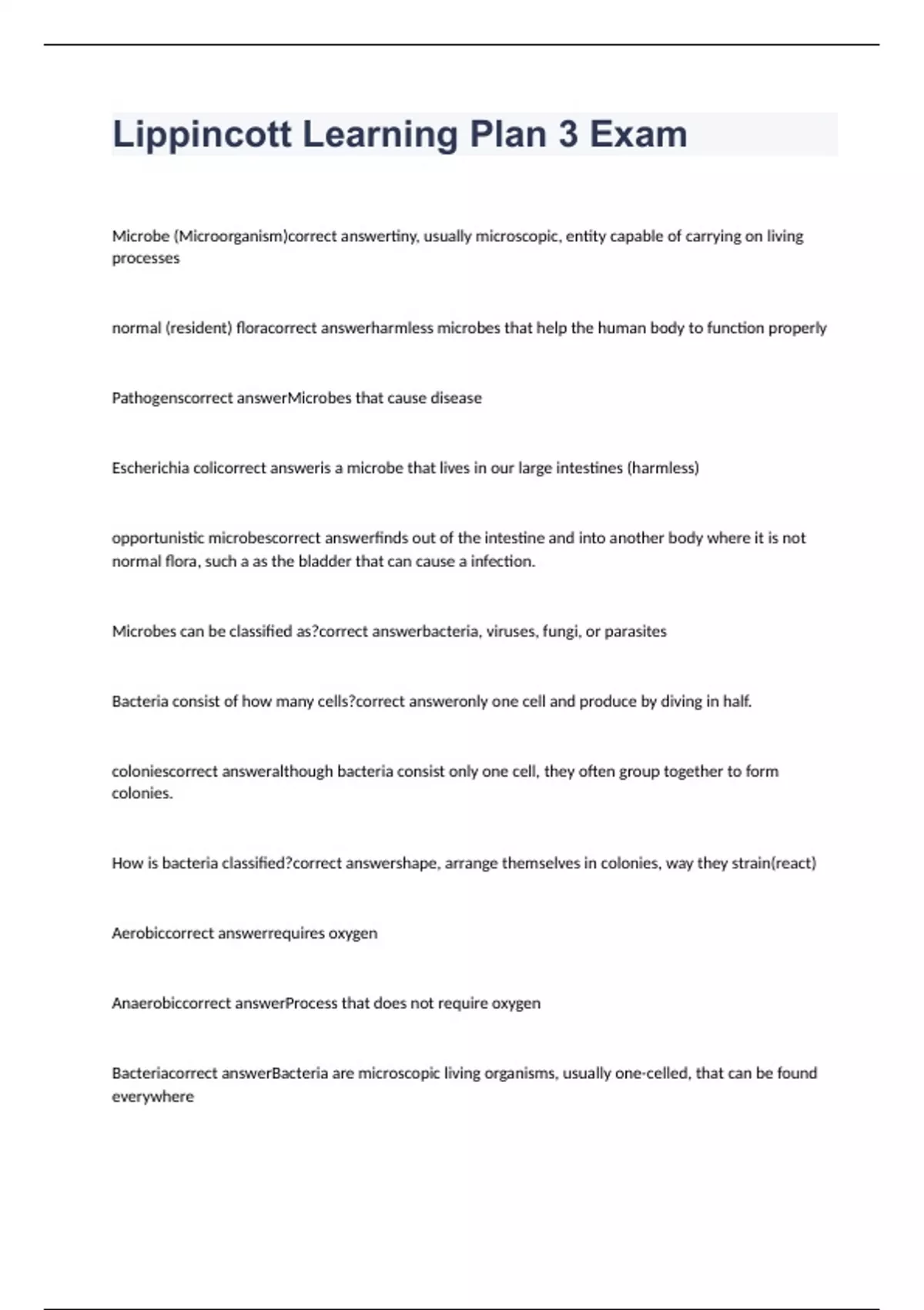 Lippincott Learning Plan 3 Exam questions with correct answers