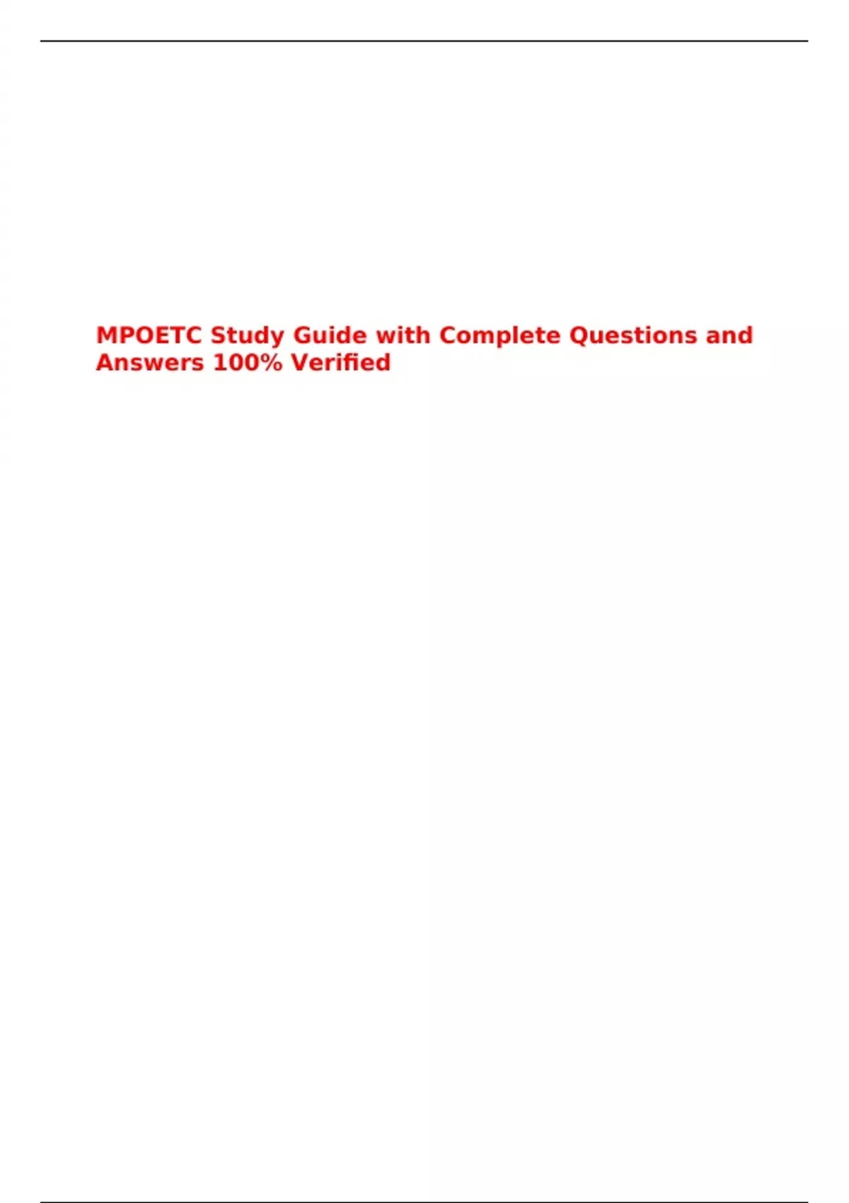 MPOETC Study Guide with Complete Questions and Answers 100% Verified