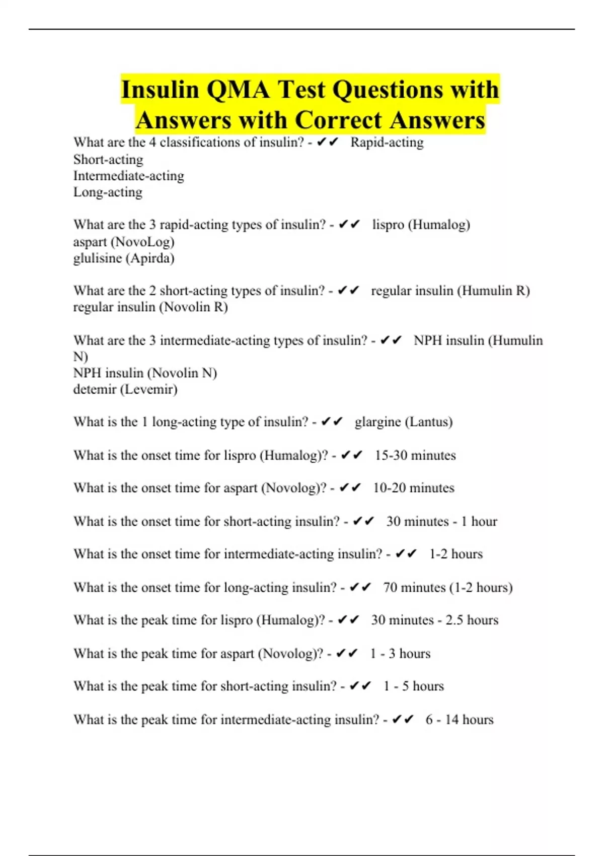 insulin qma test questions with answers