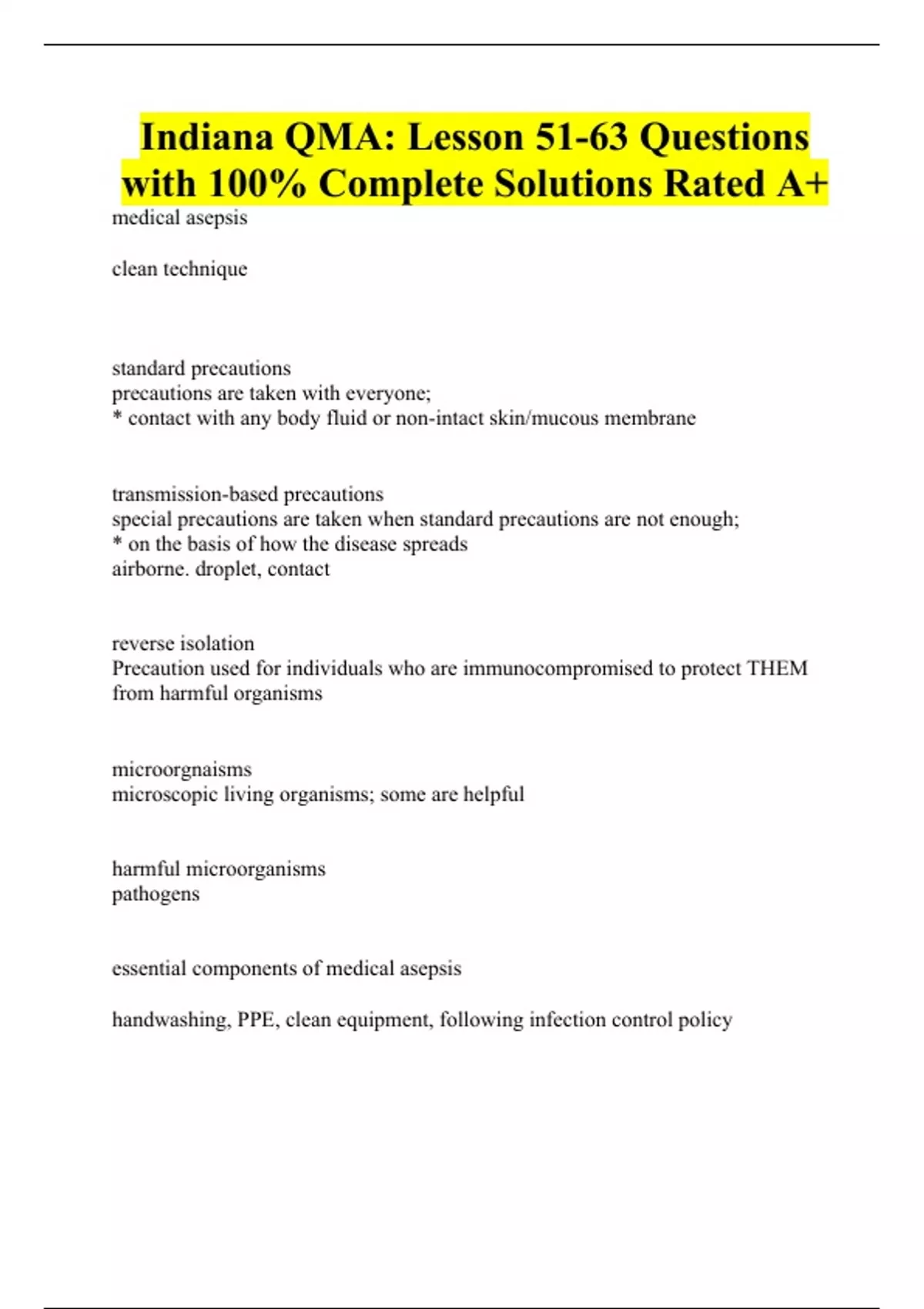 Indiana QMA: Lesson 51-63 Questions with 100% Complete Solutions Rated A+