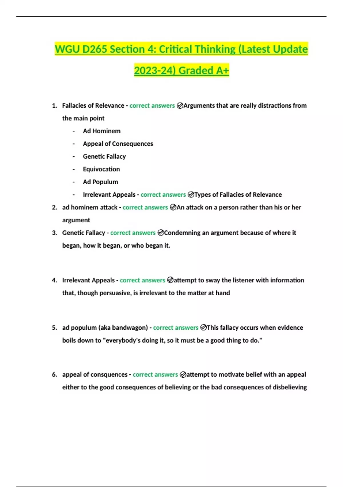 WGU D265 Section 4 Critical Thinking (Latest Update 2023-24) Graded A+