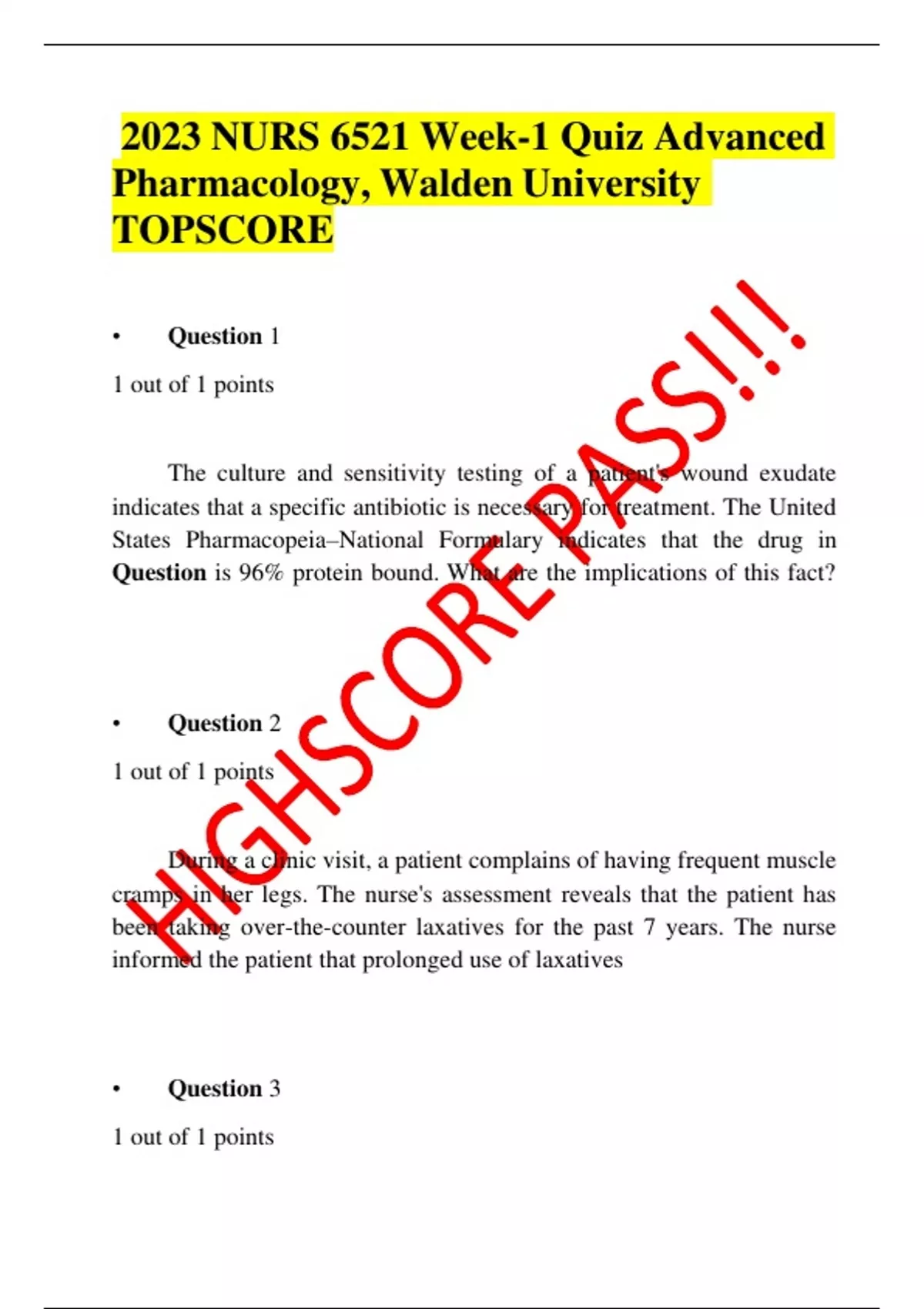 2023 NURS 6521 Week-1 Quiz Advanced Pharmacology, Walden University TOPSCORE