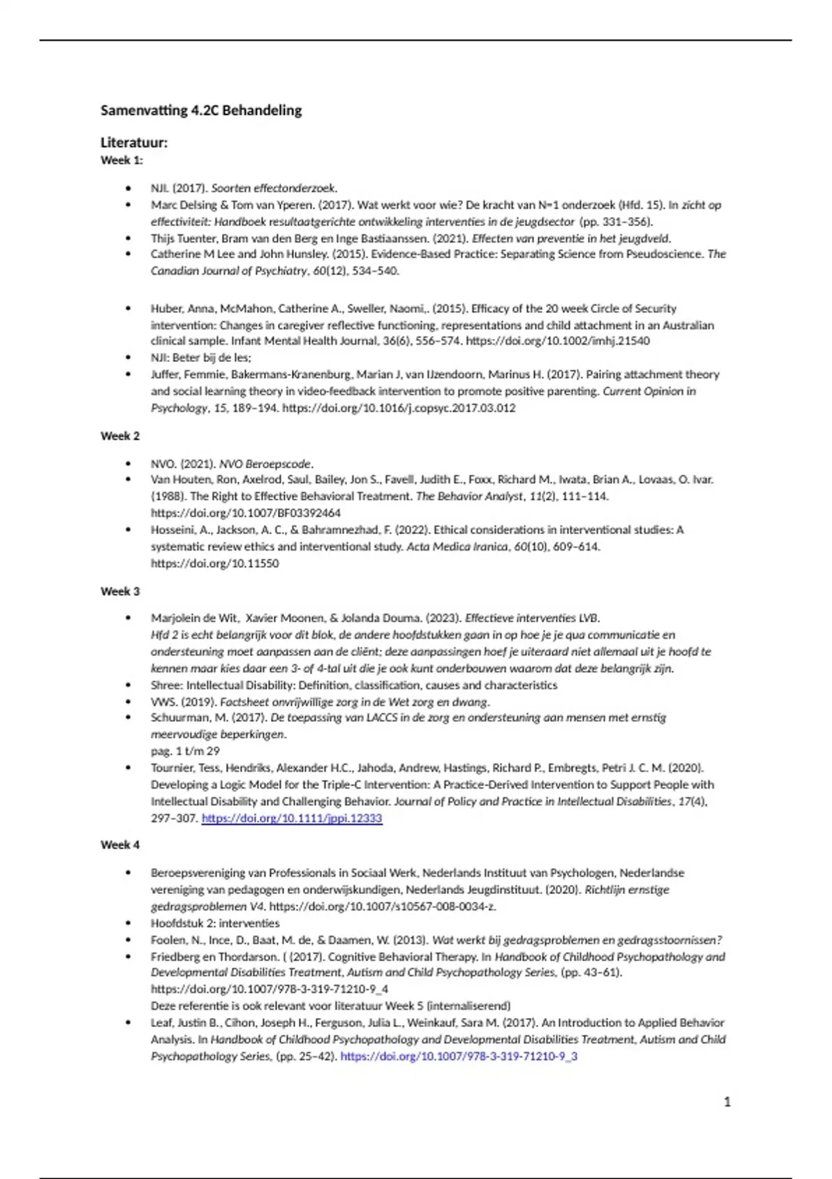 ,Literatuur Week 1 Interventie, preventie, ondersteunen en effectiviteit