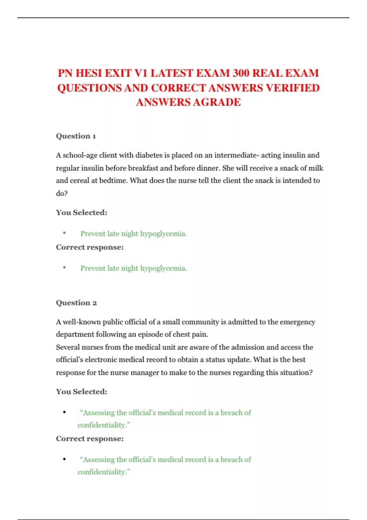 PN HESI EXIT V1 LATEST EXAM LATEST EXAM 300 REAL EXAM QUESTIONS AND CORRECT ANSWERS AGRADE
