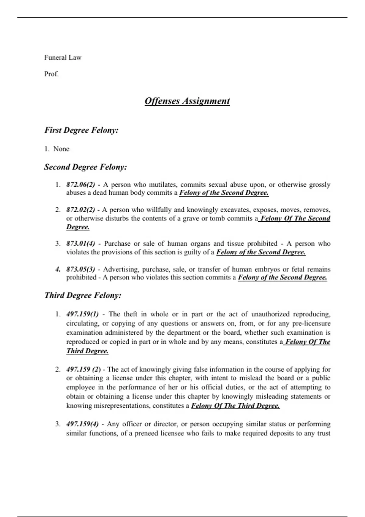 Mortuary Law - Funeral Law - State of Florida - Offenses - Misdemeanors and felonies