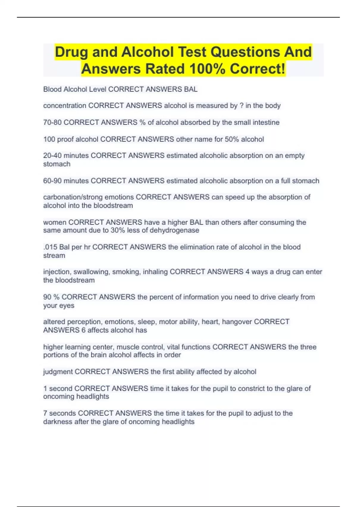 Drug and Alcohol Test Questions And Answers Rated 101