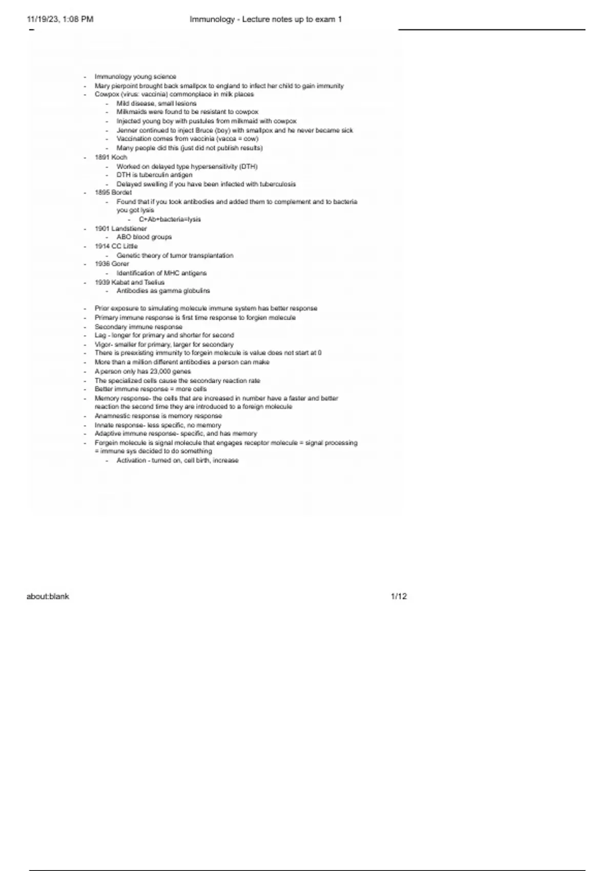 , 11/19/23, 1:08 PM Immunology - Lecture notes up to exam 1