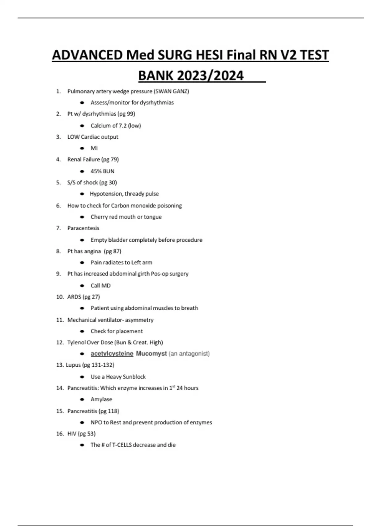 ADVANCED Med SURG HESI Final RN V2 TEST BANK 2023/2024