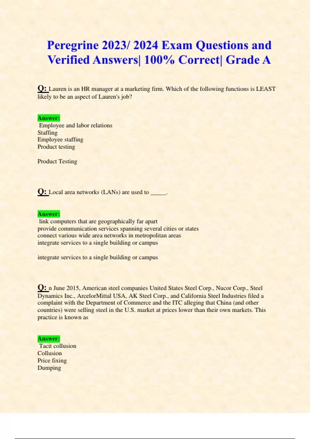 Peregrine 2023/ 2024 Exam Questions and Verified Answers| 100% Correct| Grade A