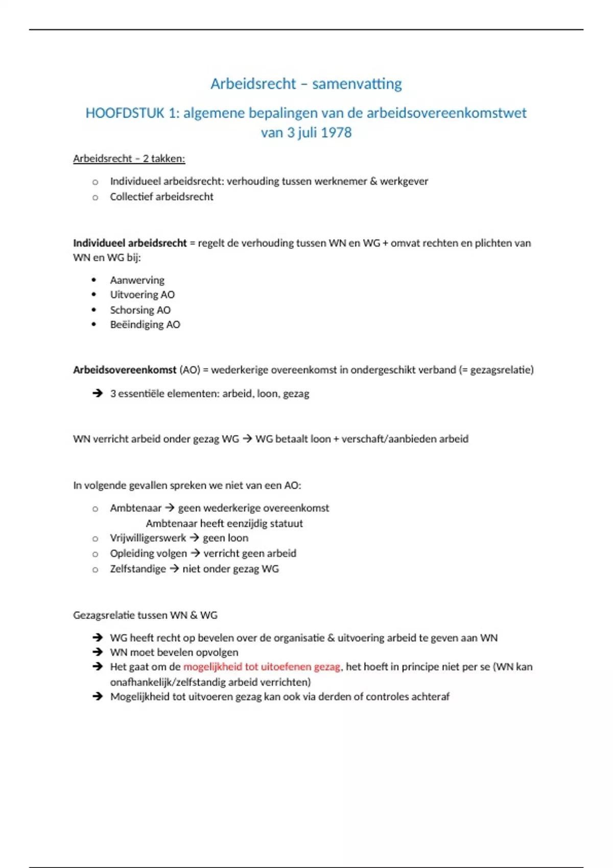 HOOFDSTUK 1: algemene bepalingen van de arbeidsovereenkomstwet