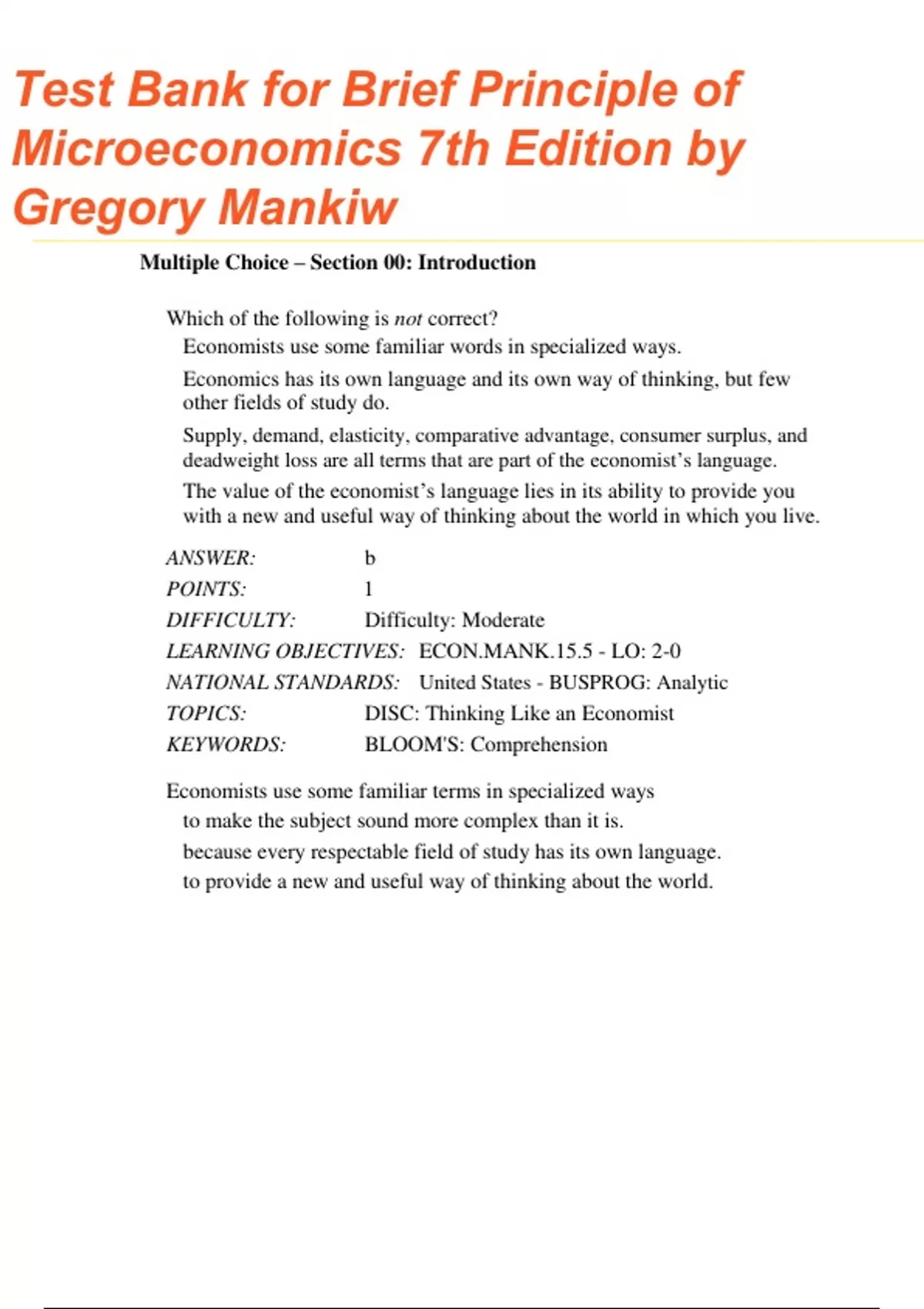 Test Bank Brief Principles of Macroeconomics 7th Edition by Gregory Mankiw