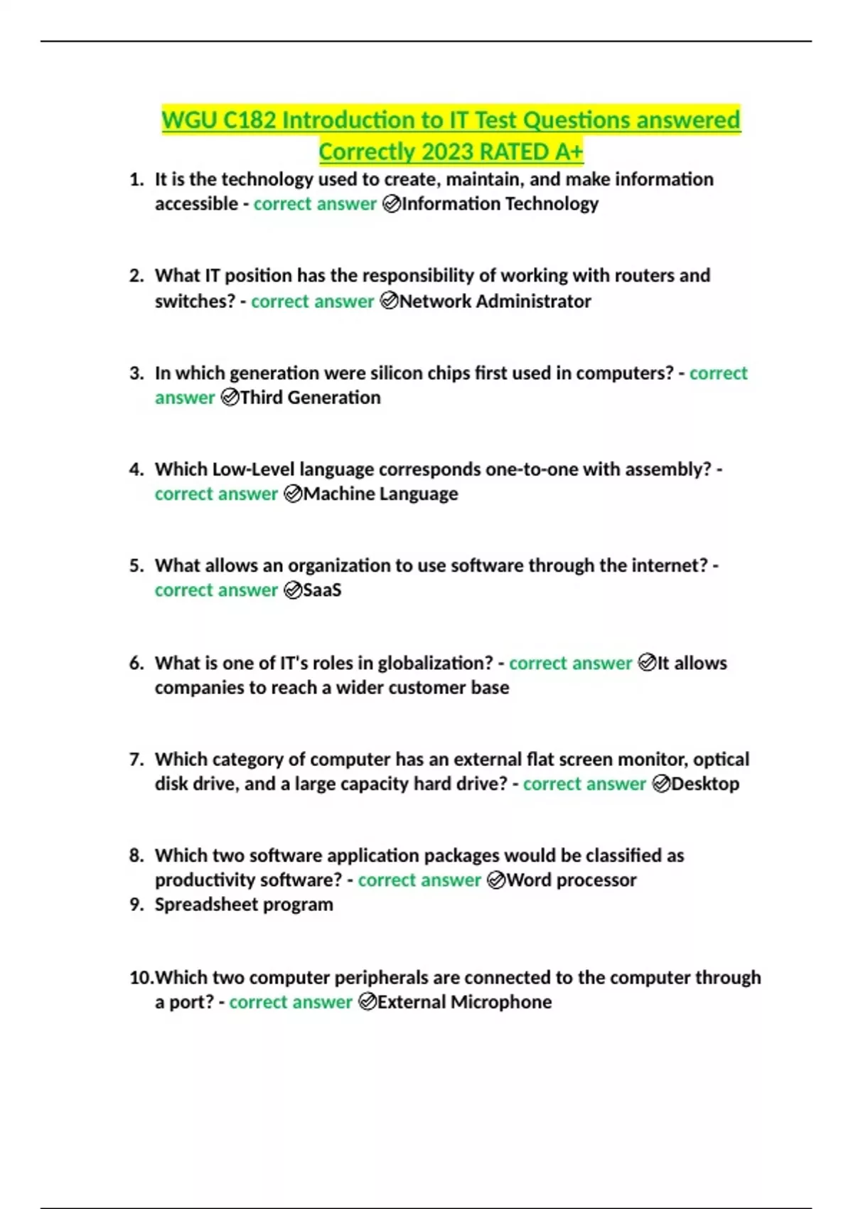WGU C182 Introduction to IT Test Questions answered Correctly 2023 RATED A+