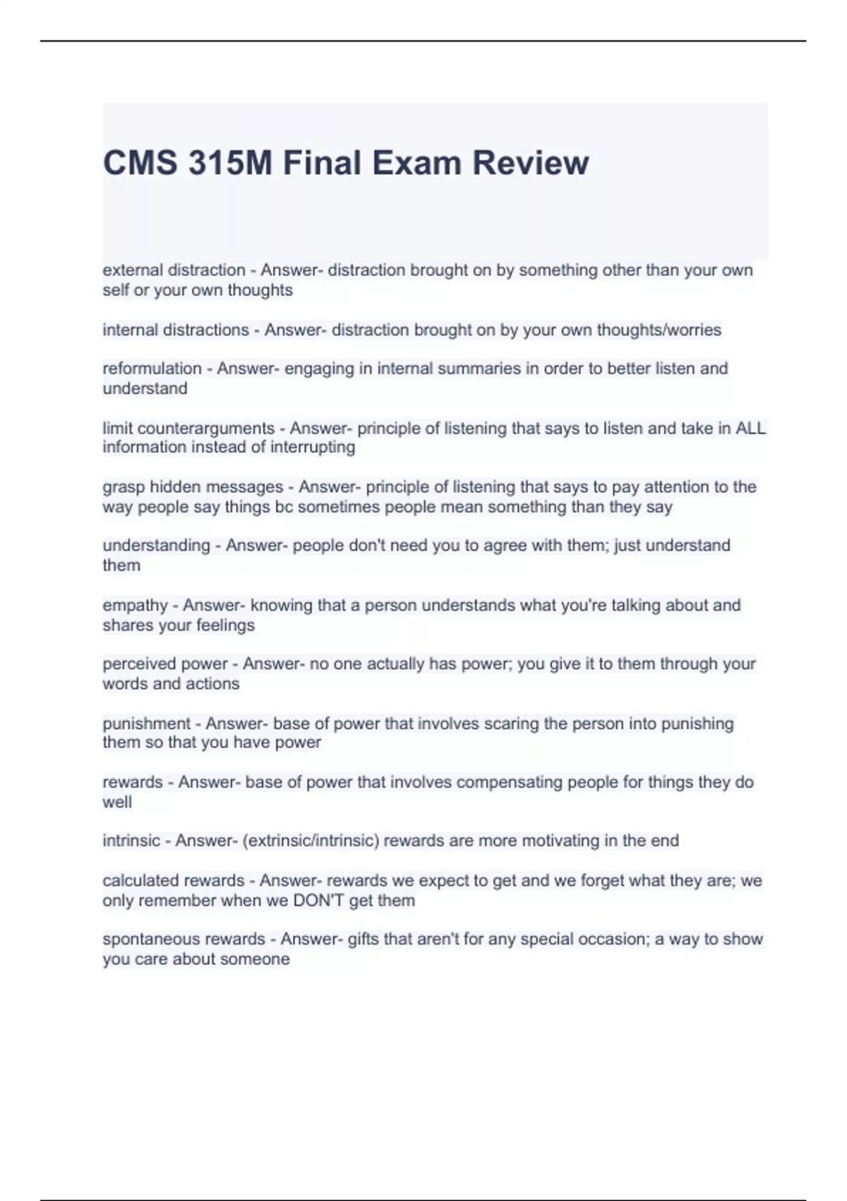 CMS 315M Final Exam Review 2023 Questions and Answers