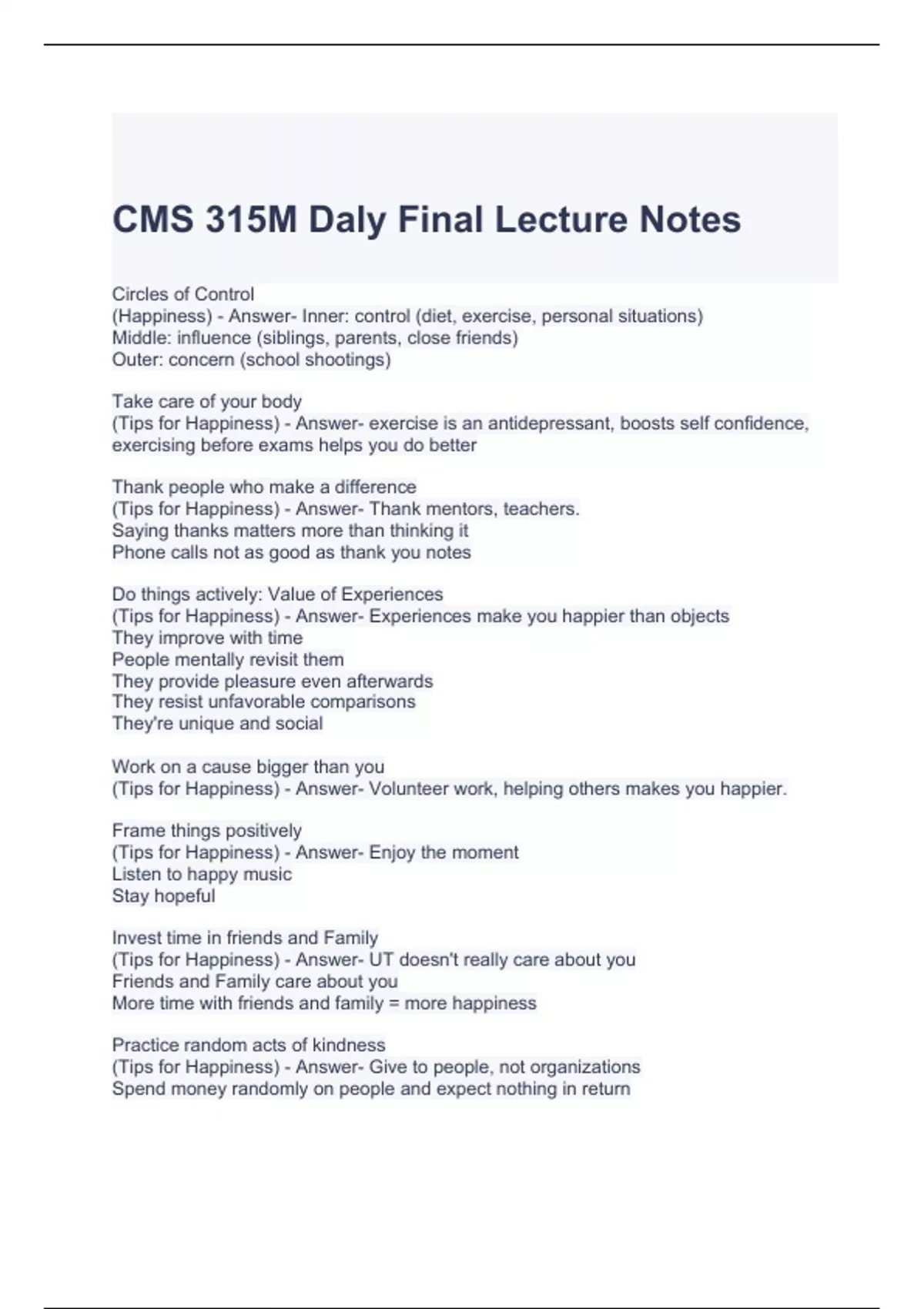 CMS 315M Daly Final Lecture Notes Questions with correct Answers