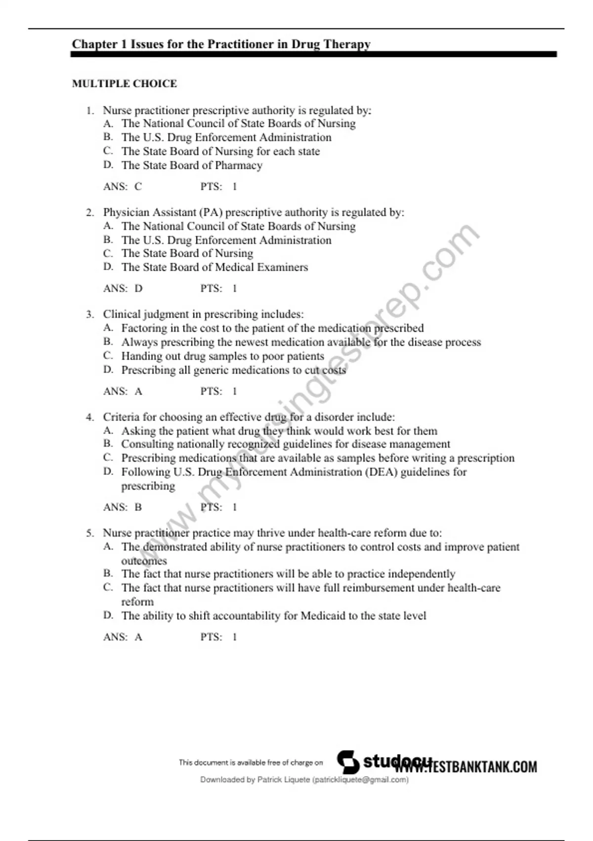 Test Bank For Pharmacotherapeutics for Advanced Practice A Practical Approach 5th Edition by Virginia Poole Arcangelo; Andrew Peterson; Veronica Wilbur; Jennifer A. Reinhold | 2022/2023 |9781975160593 | Chapter 1-56 |Complete Questions and Answers A+